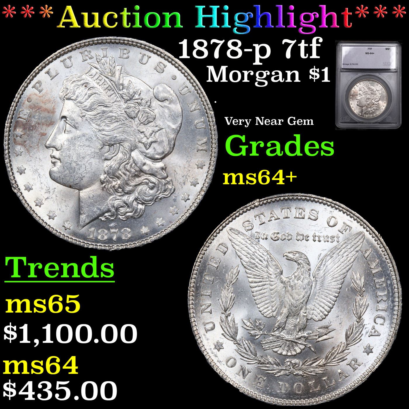 ***Auction Highlight*** 1878-p 7tf Morgan Dollar $1 Graded ms64+ BY SEGS.