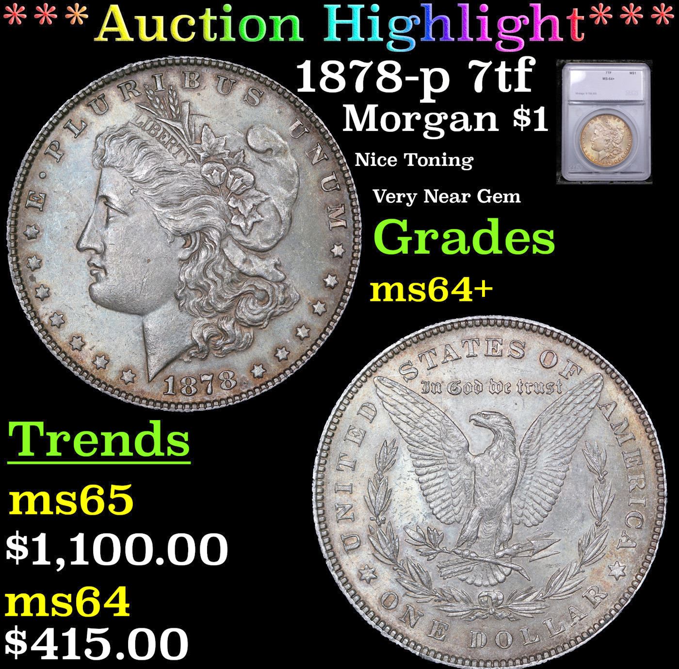 ***Auction Highlight*** 1878-p 7tf Morgan Dollar $1 Graded ms64+ By SEGS. A Key Date's Pick, Bid to Win Coin