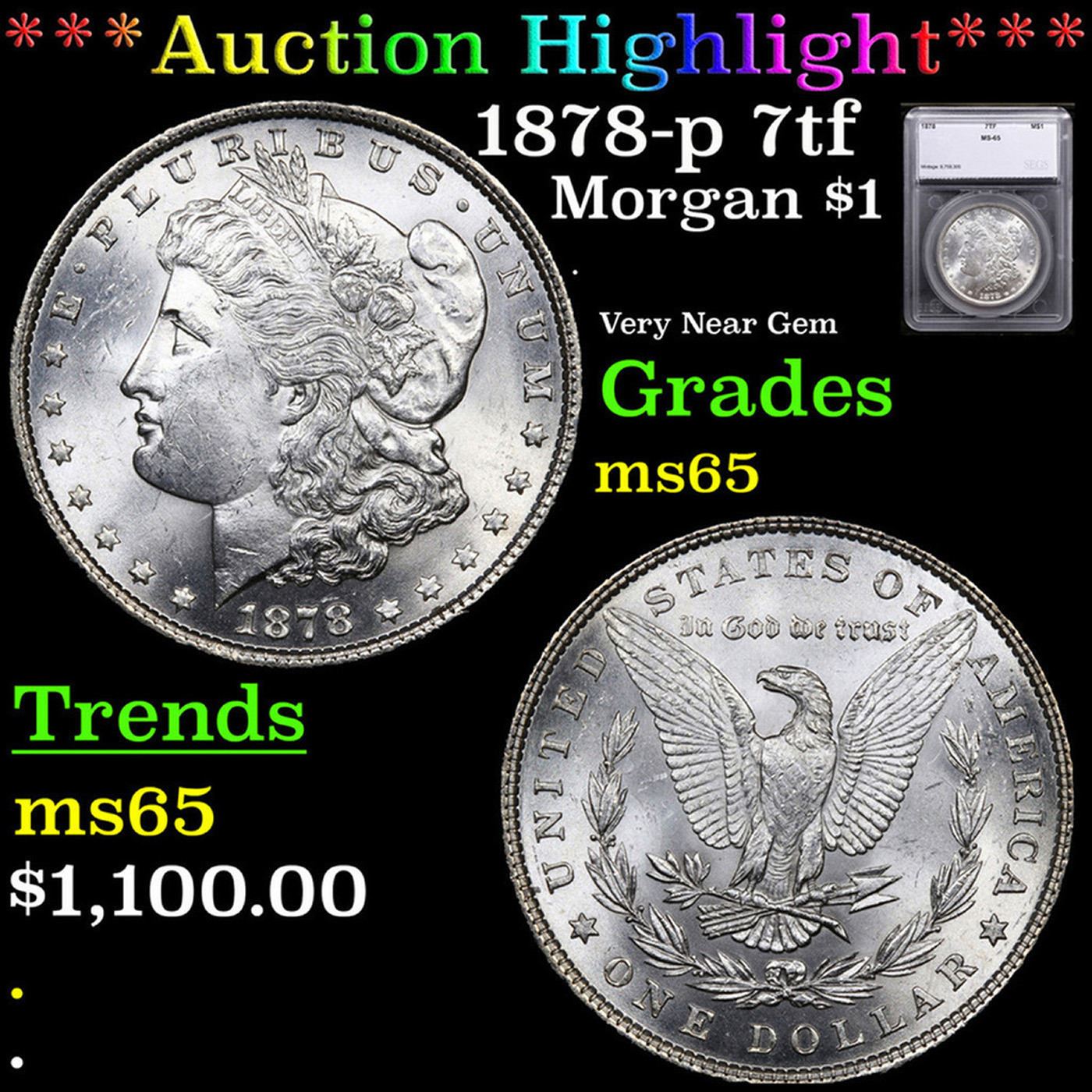 ***Auction Highlight*** 1878-p 7tf Morgan Dollar $1 Graded ms65 By SEGS.