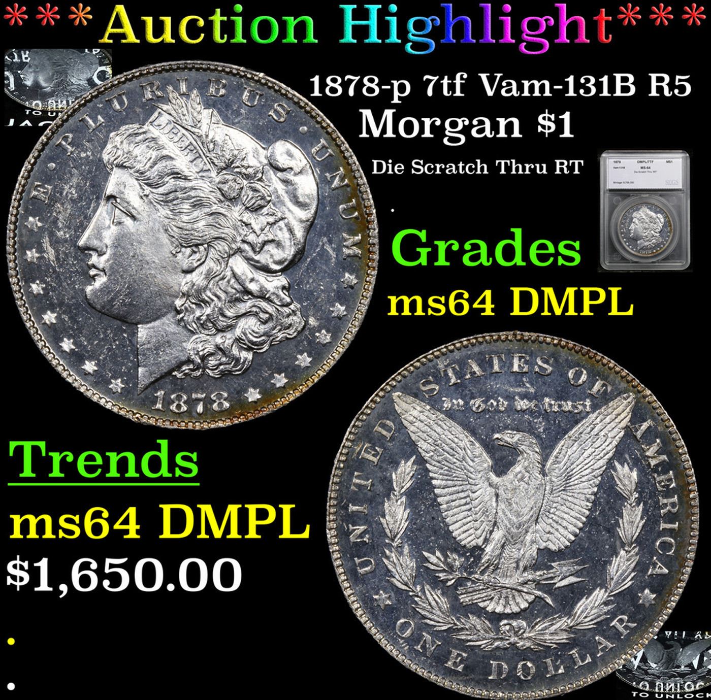 ***Auction Highlight*** 1878-p 7tf Vam-131B R5 Morgan Dollar $1 Graded ms64 DMPL By SEGS. A Corey's Pick, Bid to Win Coin