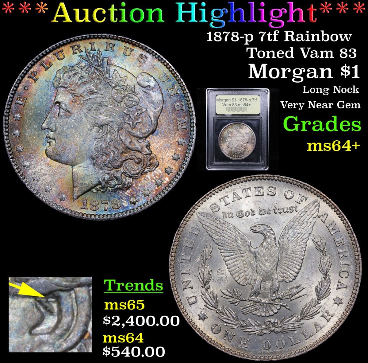 ***Auction Highlight*** 1878-p 7tf Rainbow Toned Vam 83 Morgan Dollar $1 Graded Choice+ Unc By USCG
