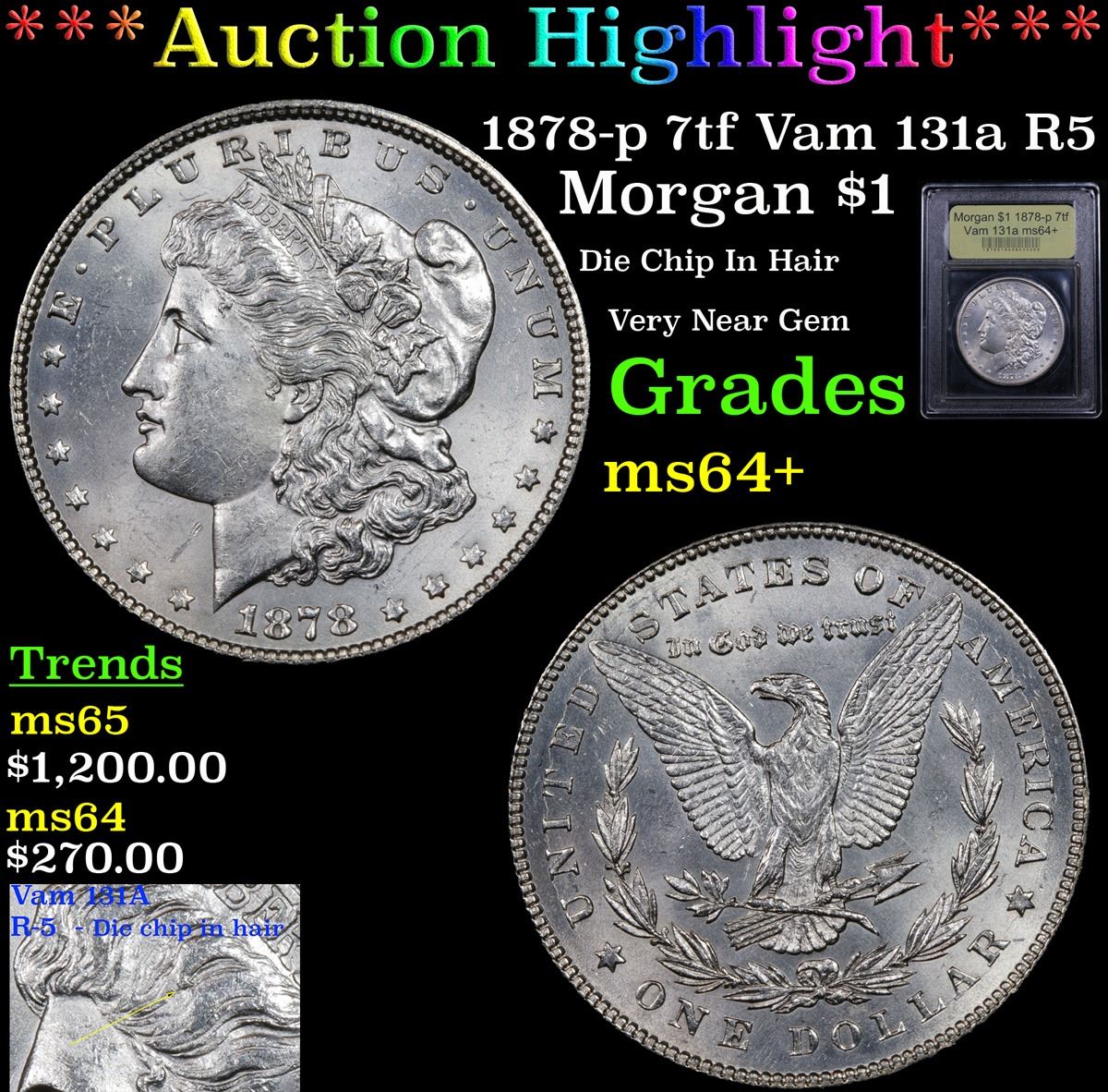 ***Auction Highlight*** 1878-p 7tf Vam 131a R5 Morgan Dollar $1 Graded Choice+ Unc By USCG (fc)