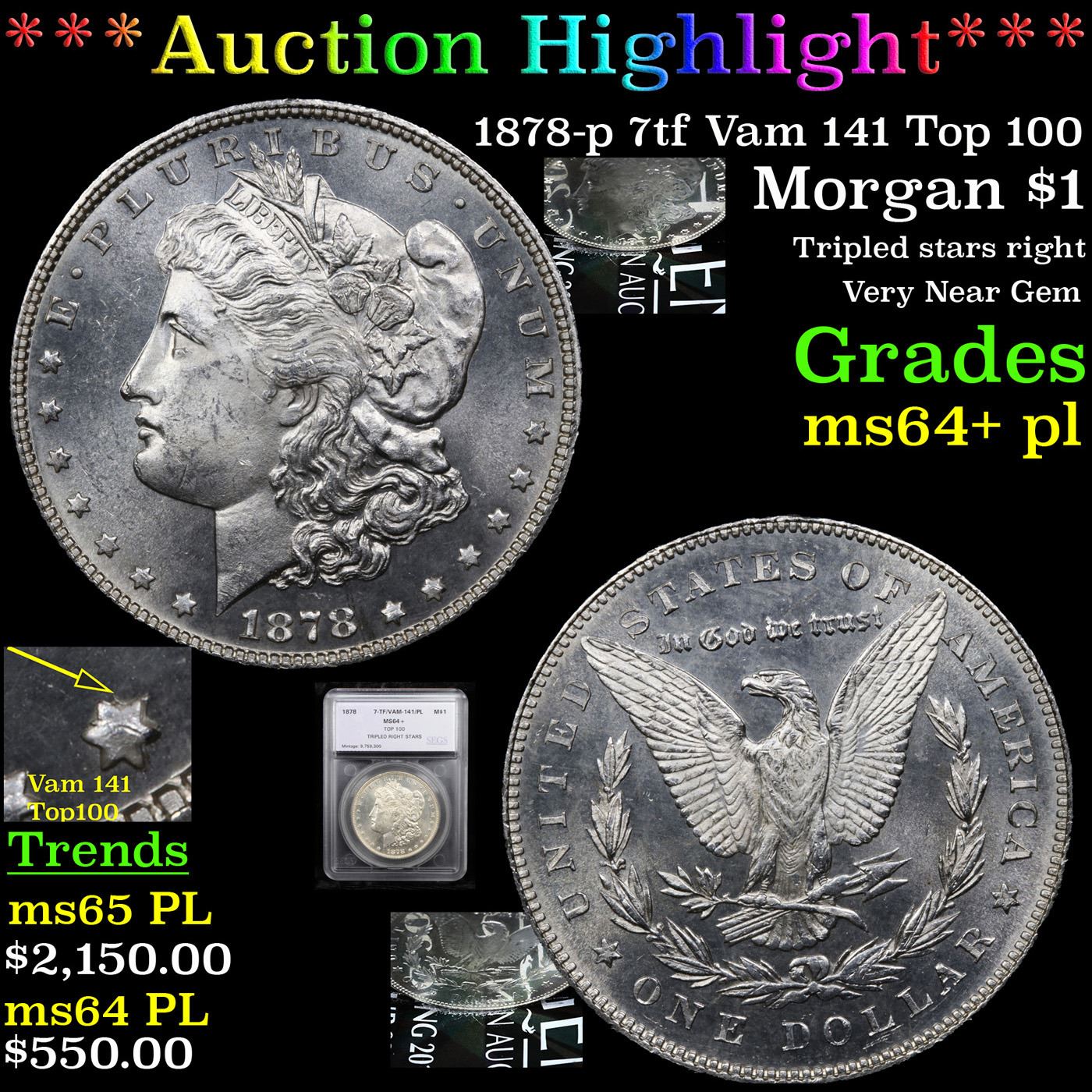 ***Auction Highlight*** 1878-p 7tf Vam 141 Top 100 Morgan Dollar $1 Graded ms64+ pl By SEGS. A Corey's Pick, Bid to Win Coin