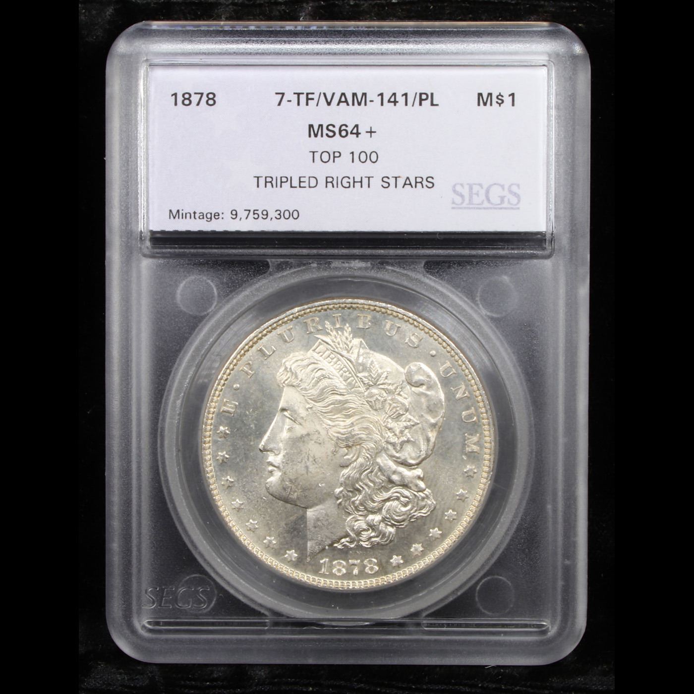 ***Auction Highlight*** 1878-p 7tf Vam 141 Top 100 Morgan Dollar $1 Graded ms64+ pl By SEGS (fc)