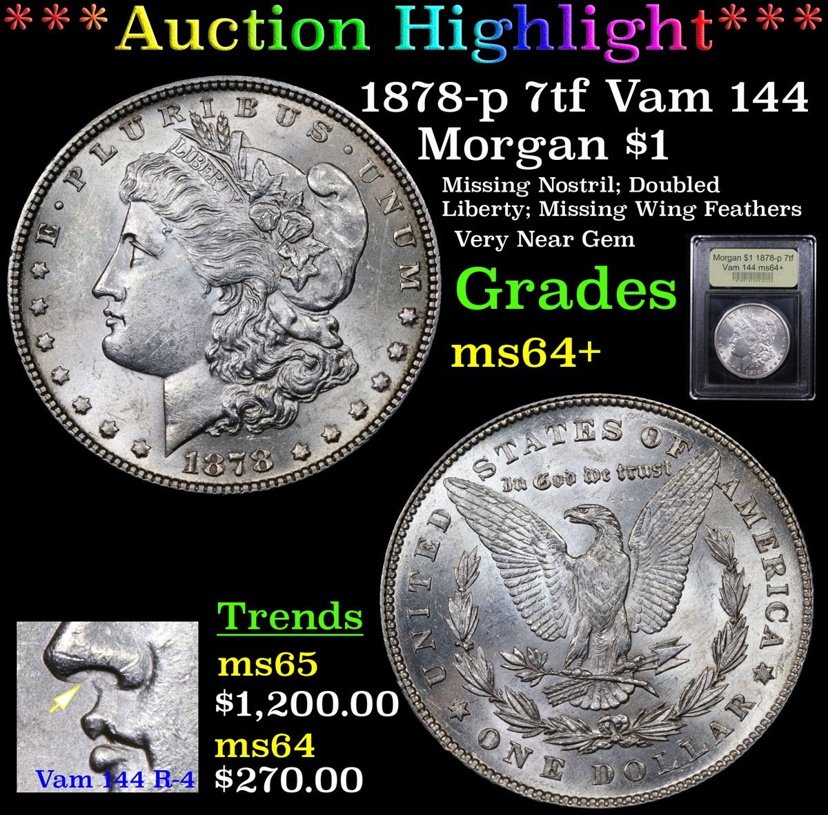 ***Auction Highlight*** 1878-p 7tf Vam 144 Morgan Dollar $1 Graded Choice+ Unc By USCG. A Corey's Pick, Bid to Win Coin