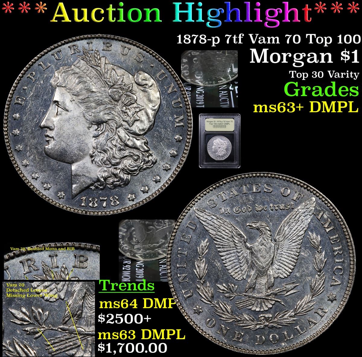 ***Auction Highlight*** 1878-p 7tf Vam 70 Top 100 Morgan Dollar $1 Graded Select Unc+ DMPL By USCG (
