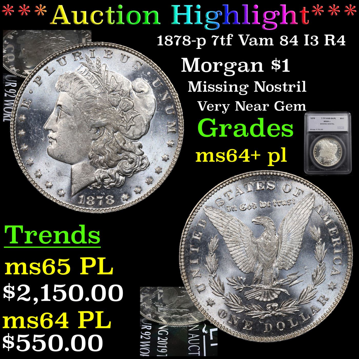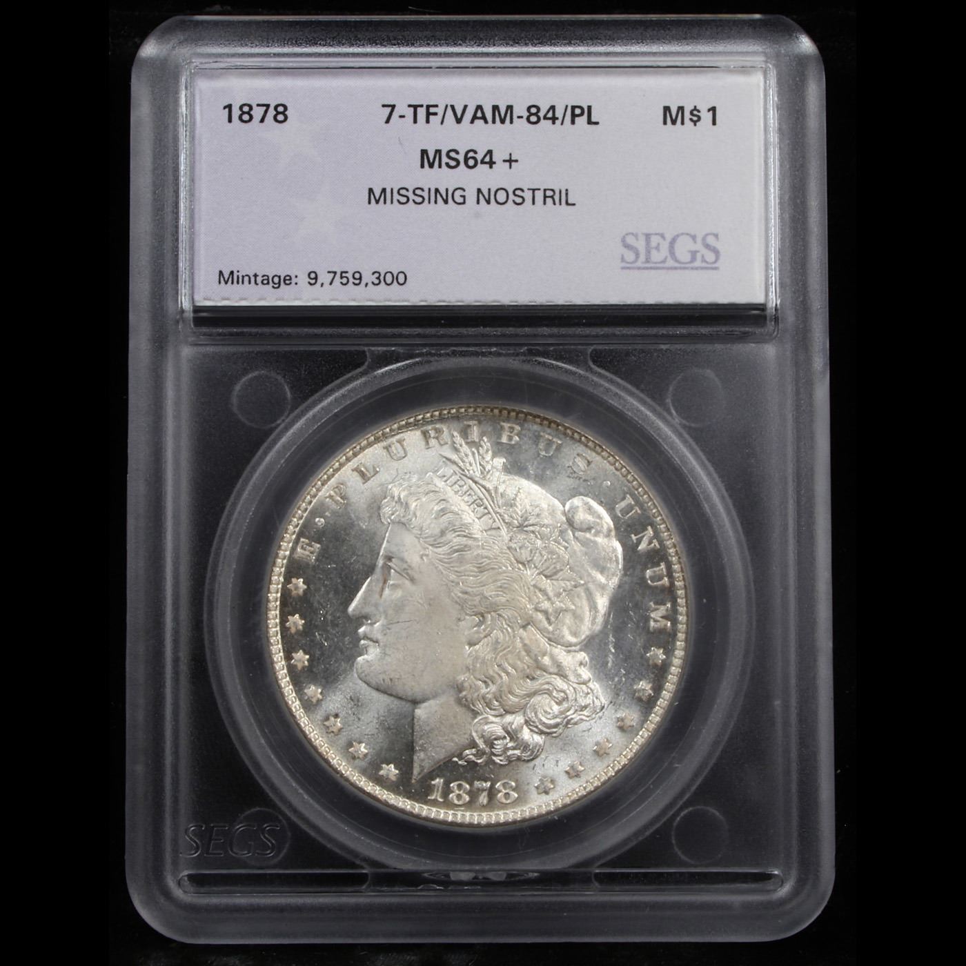 ***Auction Highlight*** 1878-p 7tf Vam 84 I3 R4 Morgan Dollar $1 Graded ms64+ pl By SEGS (fc)