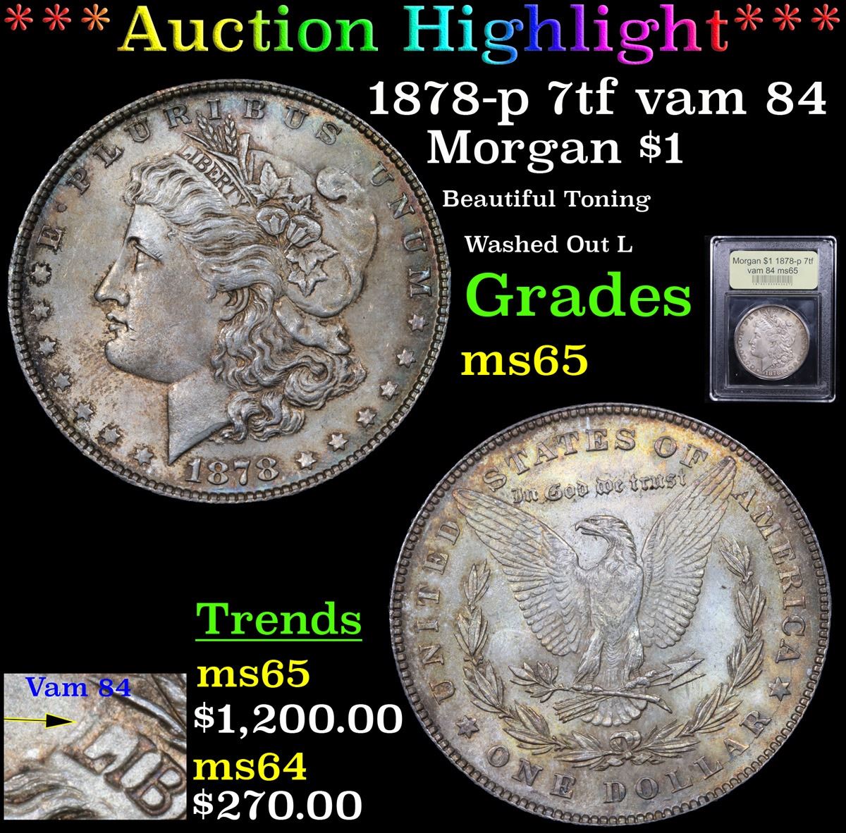 ***Auction Highlight*** 1878-p 7tf vam 84 Morgan Dollar $1 Graded GEM Unc By USCG. A Corey's Pick, Bid to Win Coin