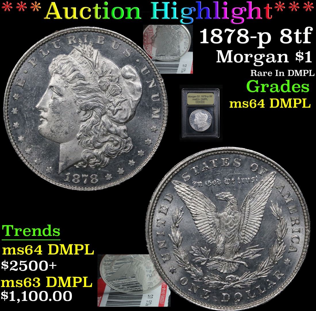 ***Auction Highlight*** 1878-p 8tf Morgan Dollar $1 Graded Choice Unc DMPL By USCG. Rare In DMPL A Corey's Pick, Bid to Win Coin