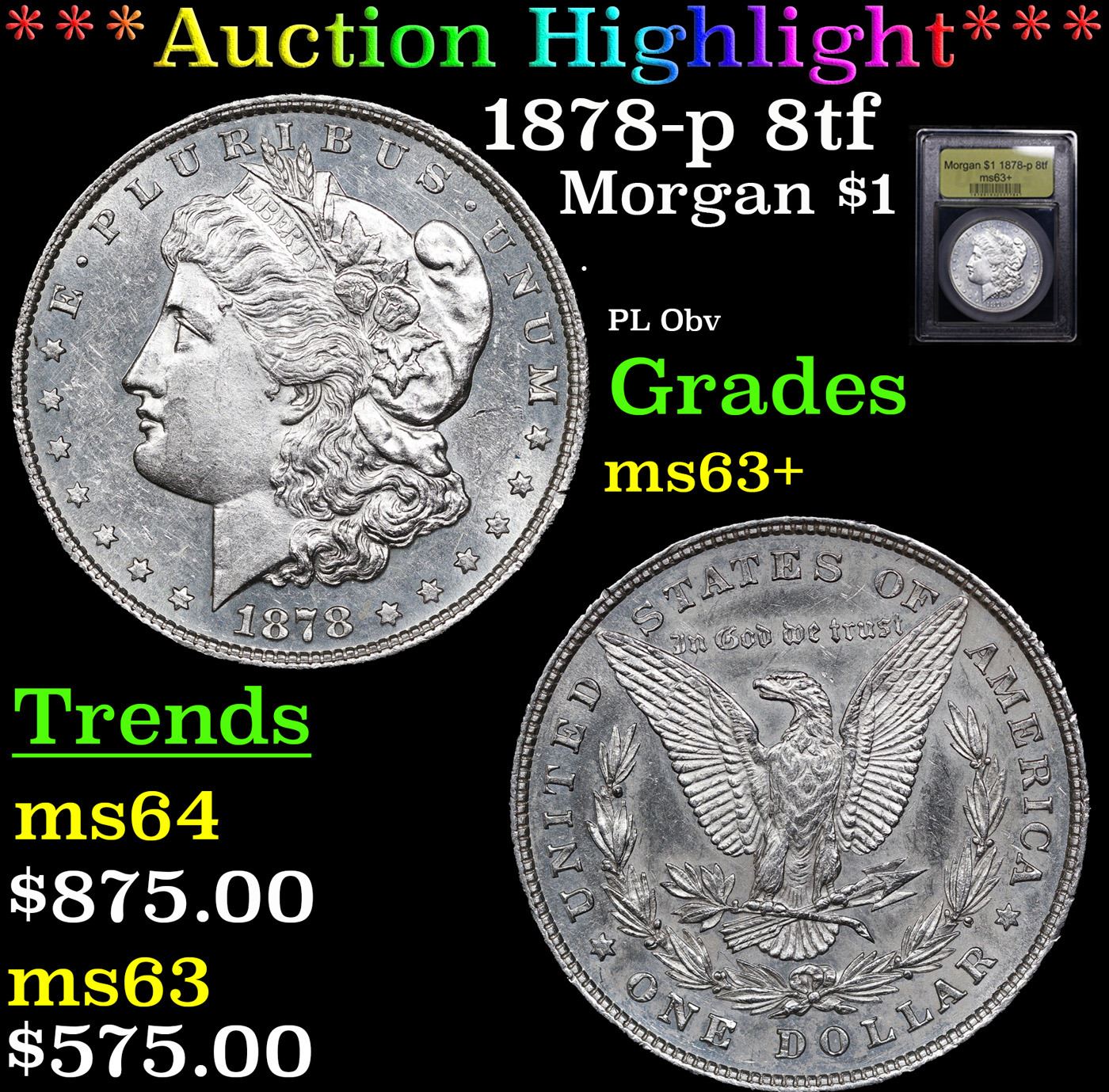 ***Auction Highlight*** 1878-p 8tf Morgan Dollar $1 Graded Select+ Unc By USCG. A Key Date's Pick, Bid to Win Coin