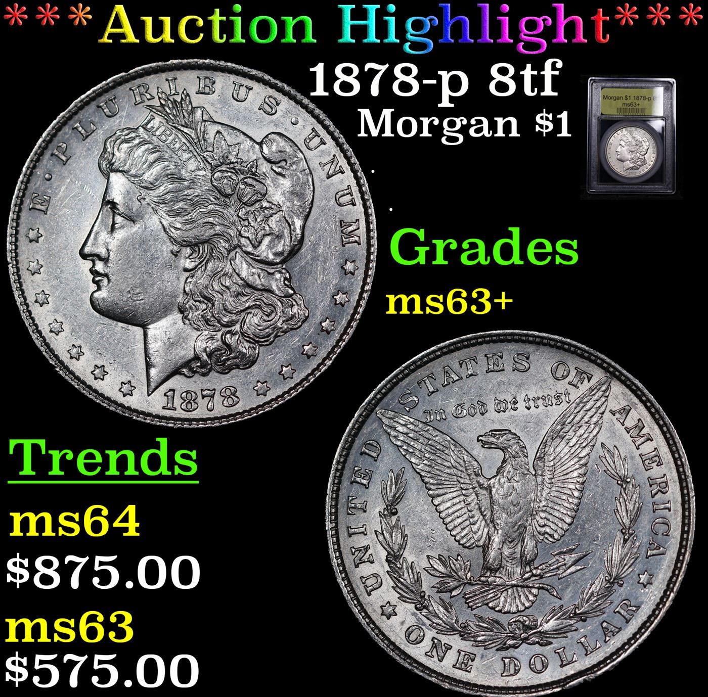 ***Auction Highlight*** 1878-p 8tf Morgan Dollar $1 Graded Select+ Unc By USCG.