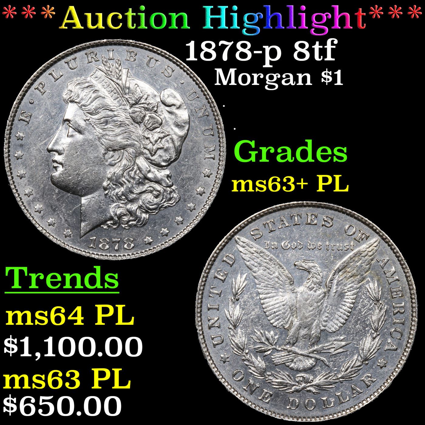 ***Auction Highlight*** 1878-p 8tf Morgan Dollar $1 Graded Select Unc+ PL BY USCG.