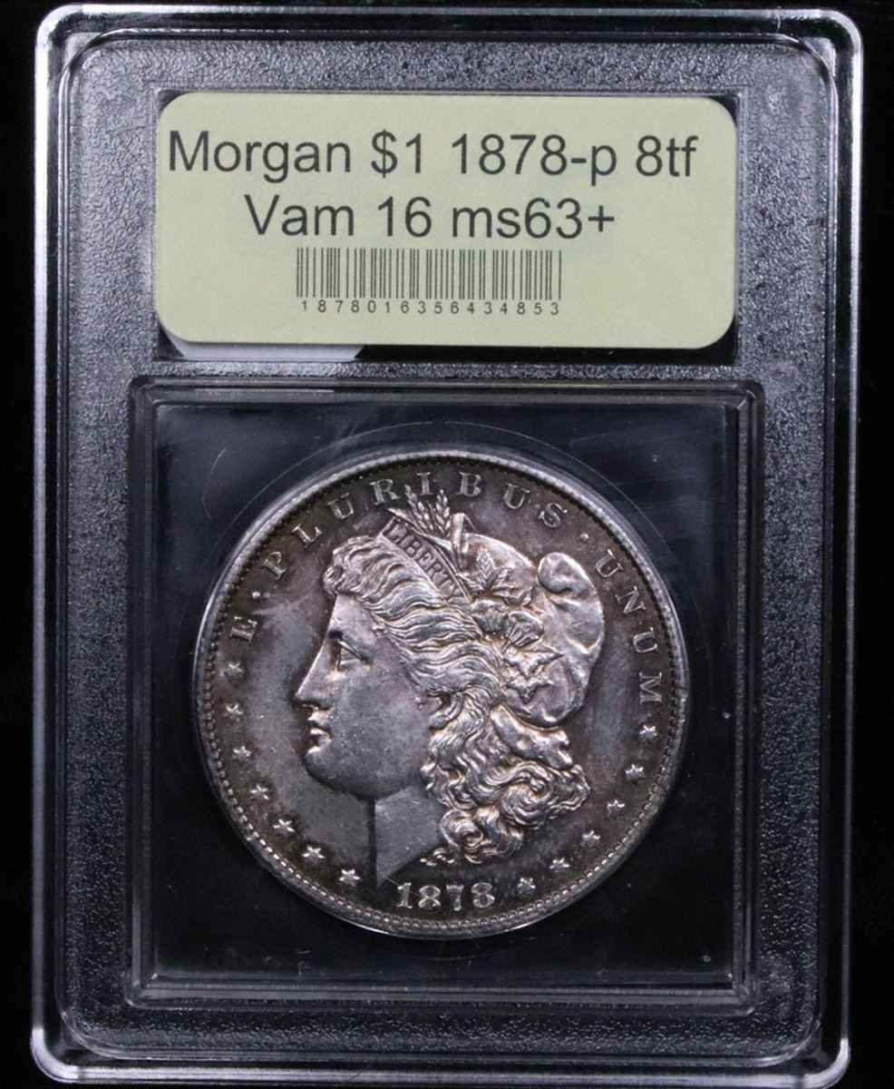 ***Auction Highlight*** 1878-p 8tf Rainbow Toned Vam 16 Morgan Dollar $1 Grades Select+ Unc.