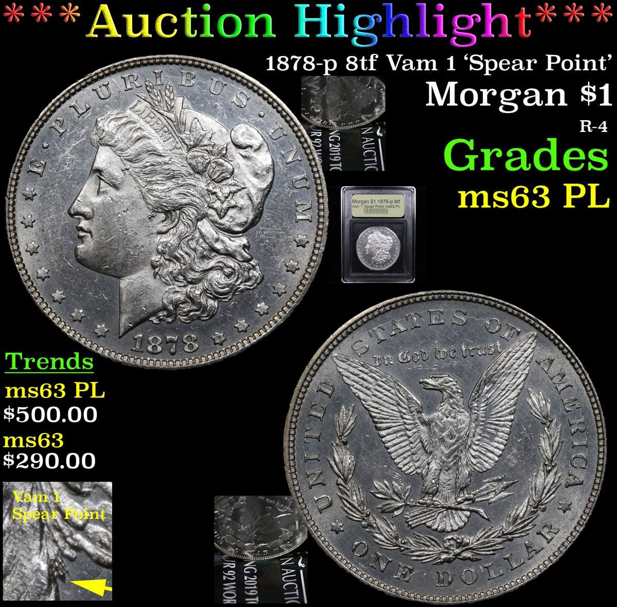 ***Auction Highlight*** 1878-p 8tf Vam 1 'Spear Point' Morgan Dollar $1 Graded Select Unc PL By USCG
