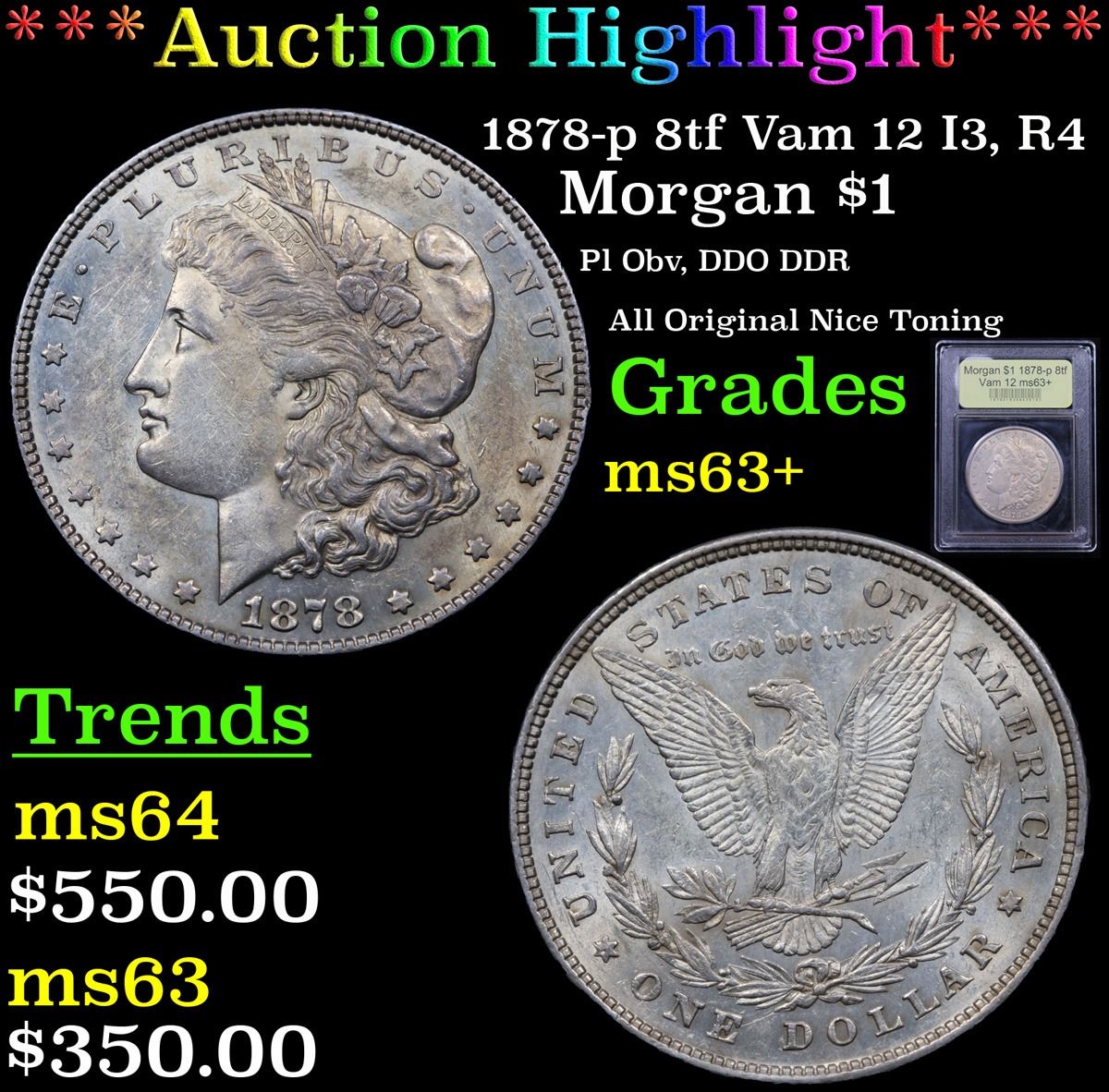 ***Auction Highlight*** 1878-p 8tf Vam 12 I3, R4 Morgan Dollar $1 Graded Select+ Unc By USCG (fc)