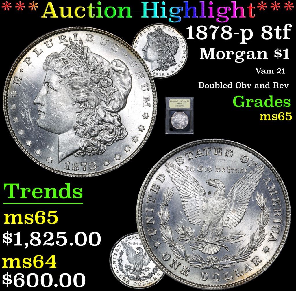 ***Auction Highlight*** 1878-p 8tf Vam 21 Doubled Obv And Rev Great Gem Example Morgan Dollar $1 Graded GEM Unc By USCG. A Corey's Pick, Bid to Win, Don't let it get Away Coin