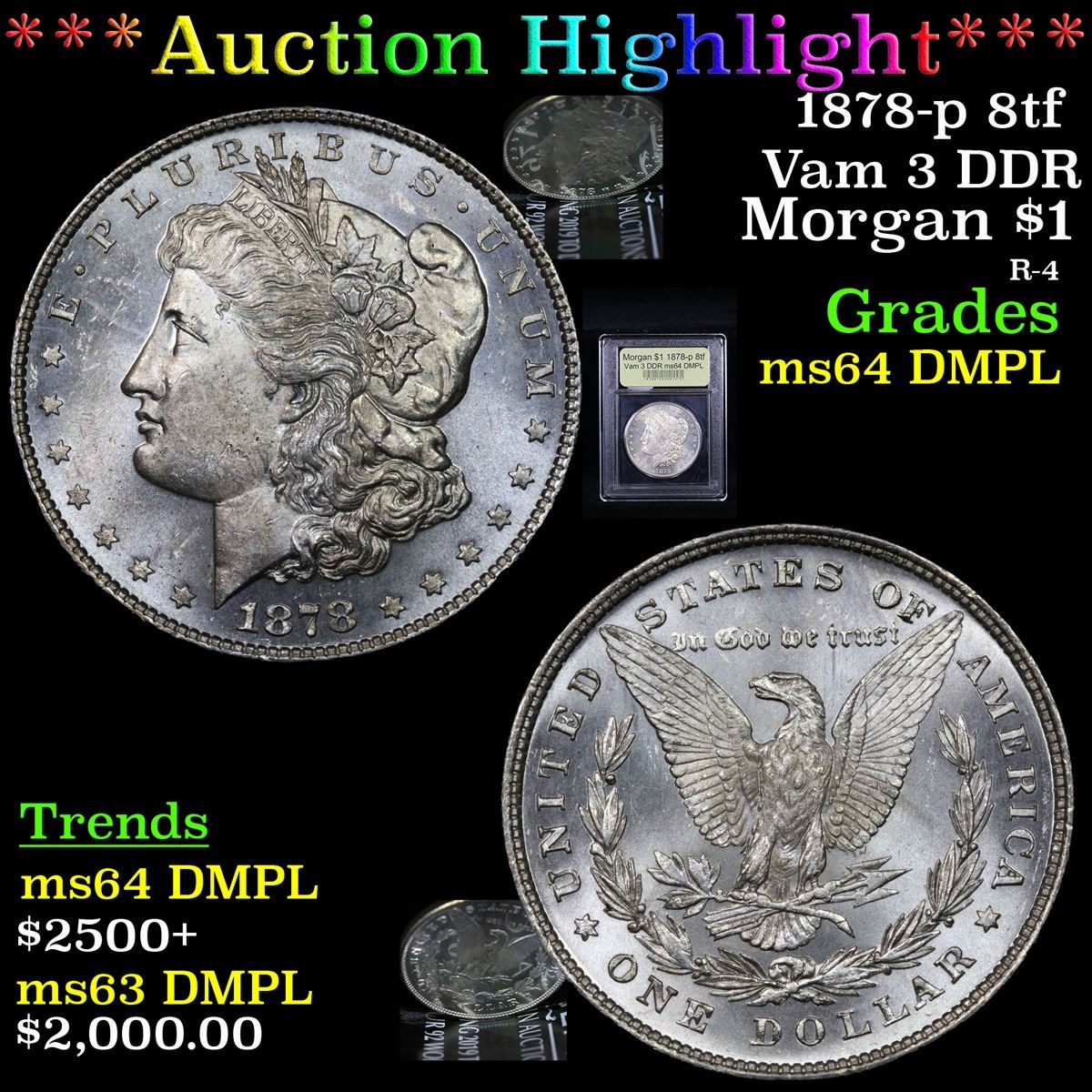 ***Auction Highlight*** 1878-p 8tf Vam 3 DDR Morgan Dollar $1 Graded Choice Unc DMPL By USCG (fc)