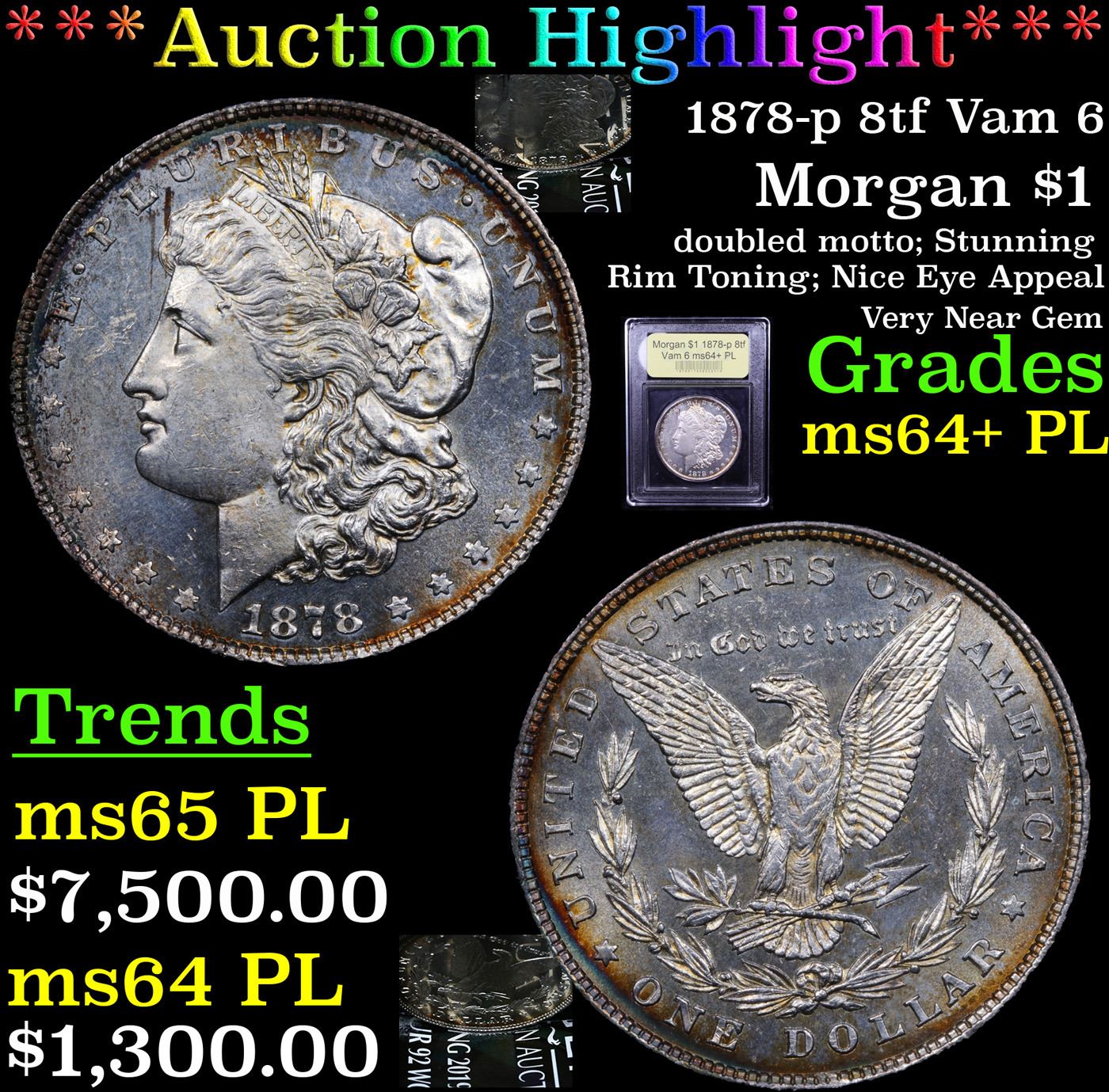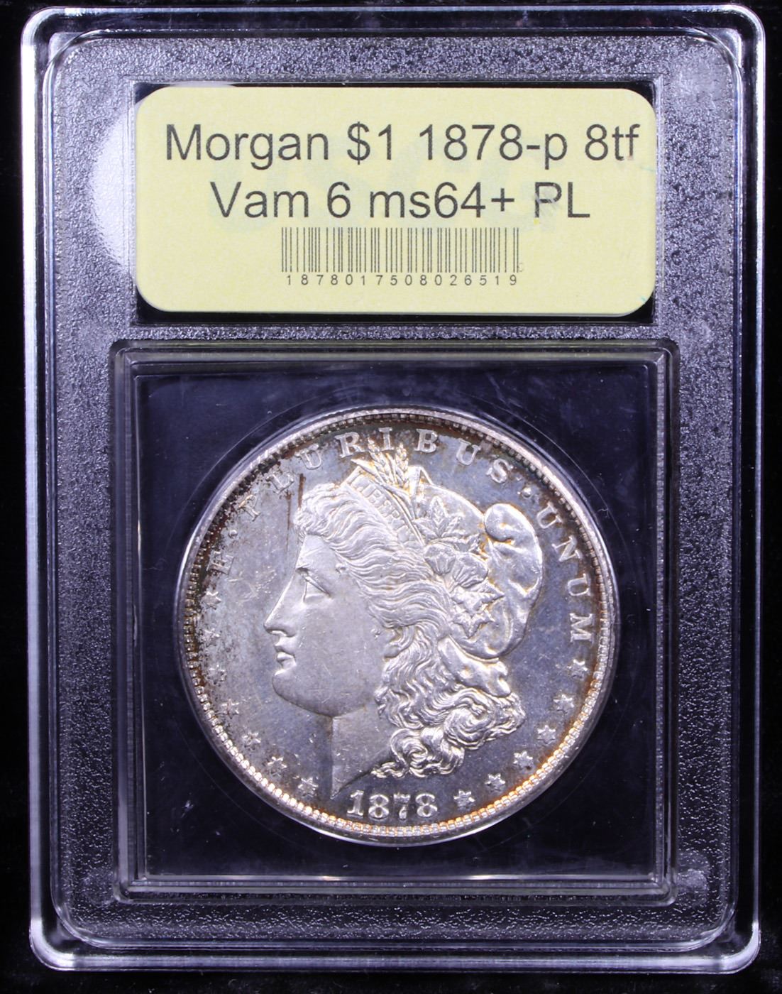 ***Auction Highlight*** 1878-p 8tf Vam 6 Morgan Dollar $1 Graded Choice Unc+ PL By USCG (fc)