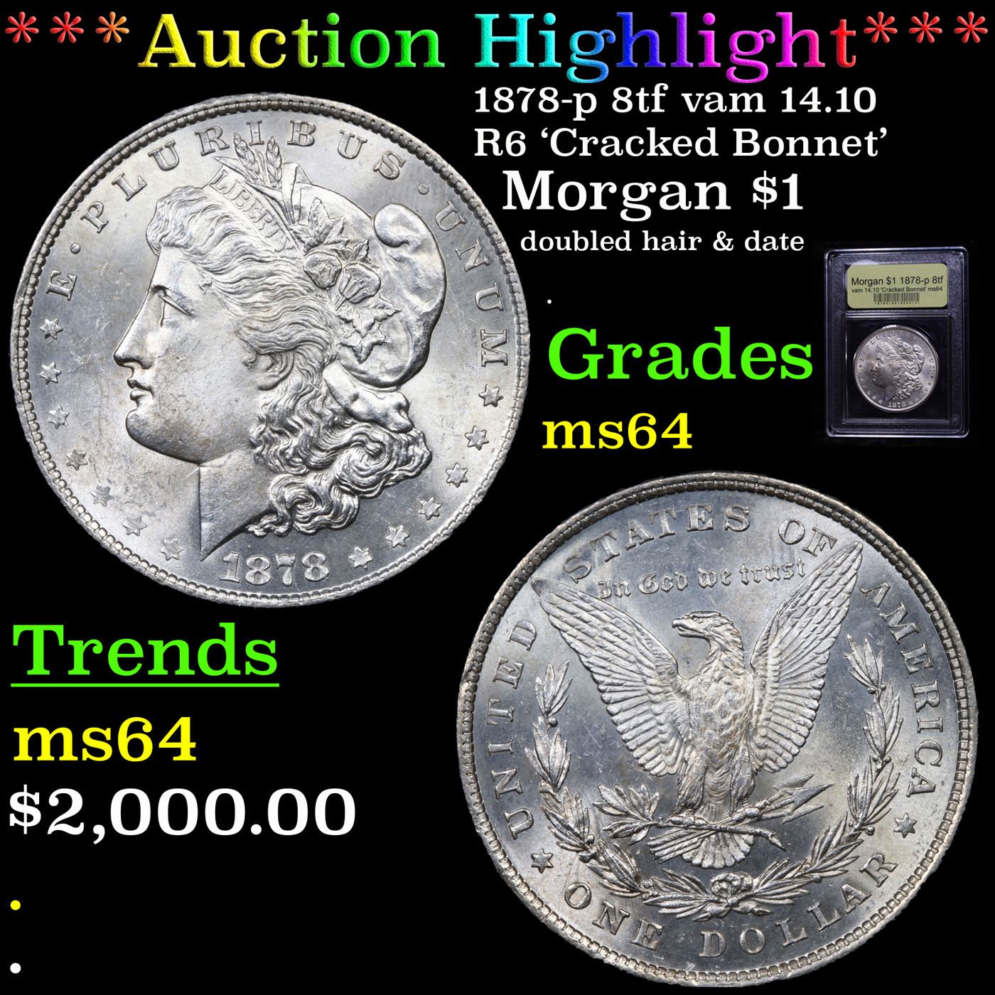***Auction Highlight*** 1878-p 8tf vam 14.10 R6 'Cracked Bonnet' Morgan Dollar $1 Graded Choice Unc