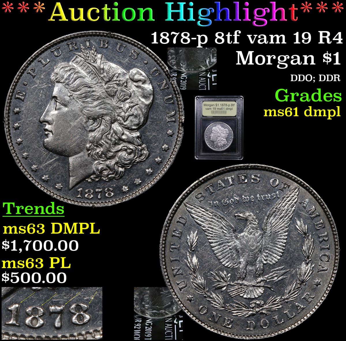 ***Auction Highlight*** 1878-p 8tf vam 19 R4 Morgan Dollar $1 Graded Unc+ DMPL By USCG (fc)