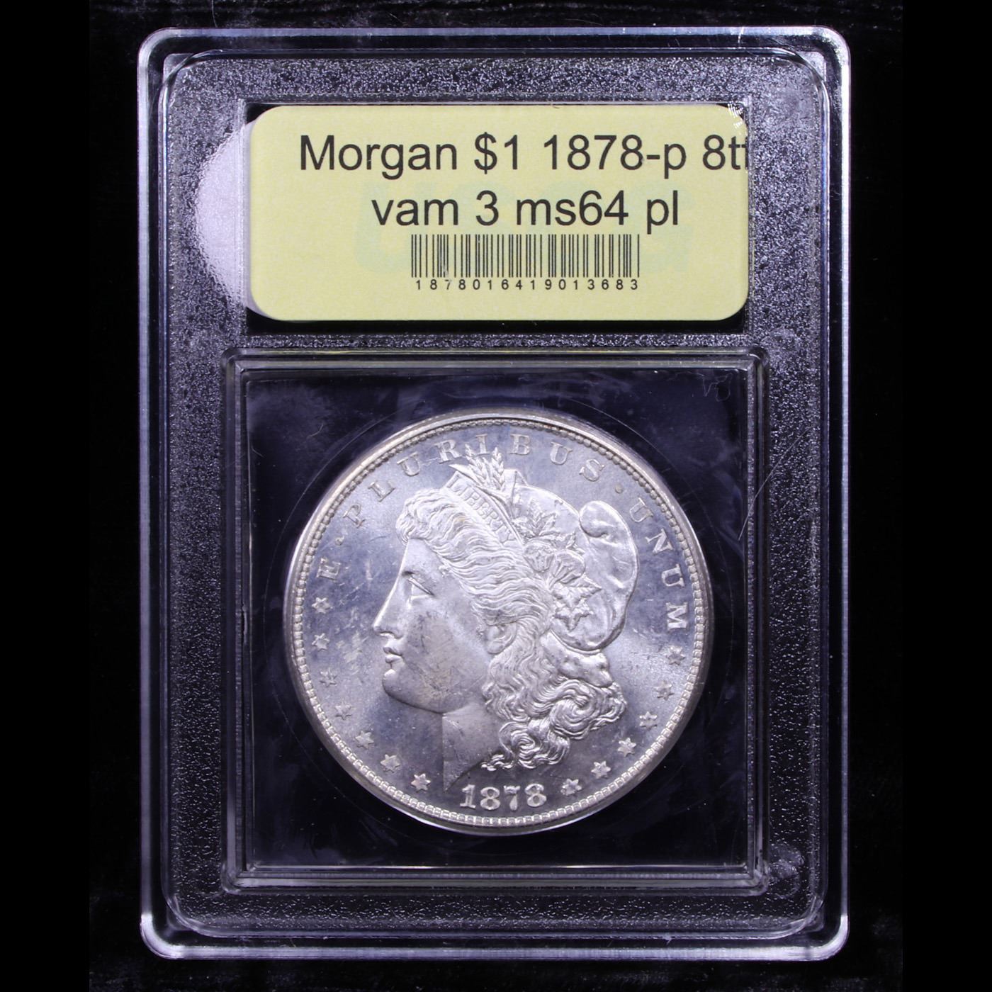 ***Auction Highlight*** 1878-p 8tf vam 3 Morgan Dollar $1 Graded Choice Unc PL By USCG (fc)