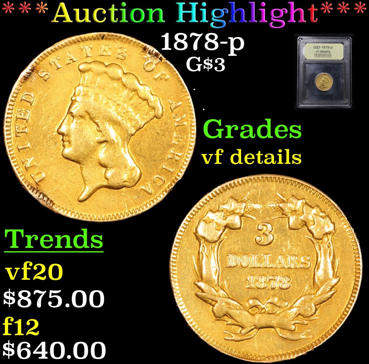 ***Auction Highlight*** 1878-p . . G$3 3 Graded vf details By USCG.