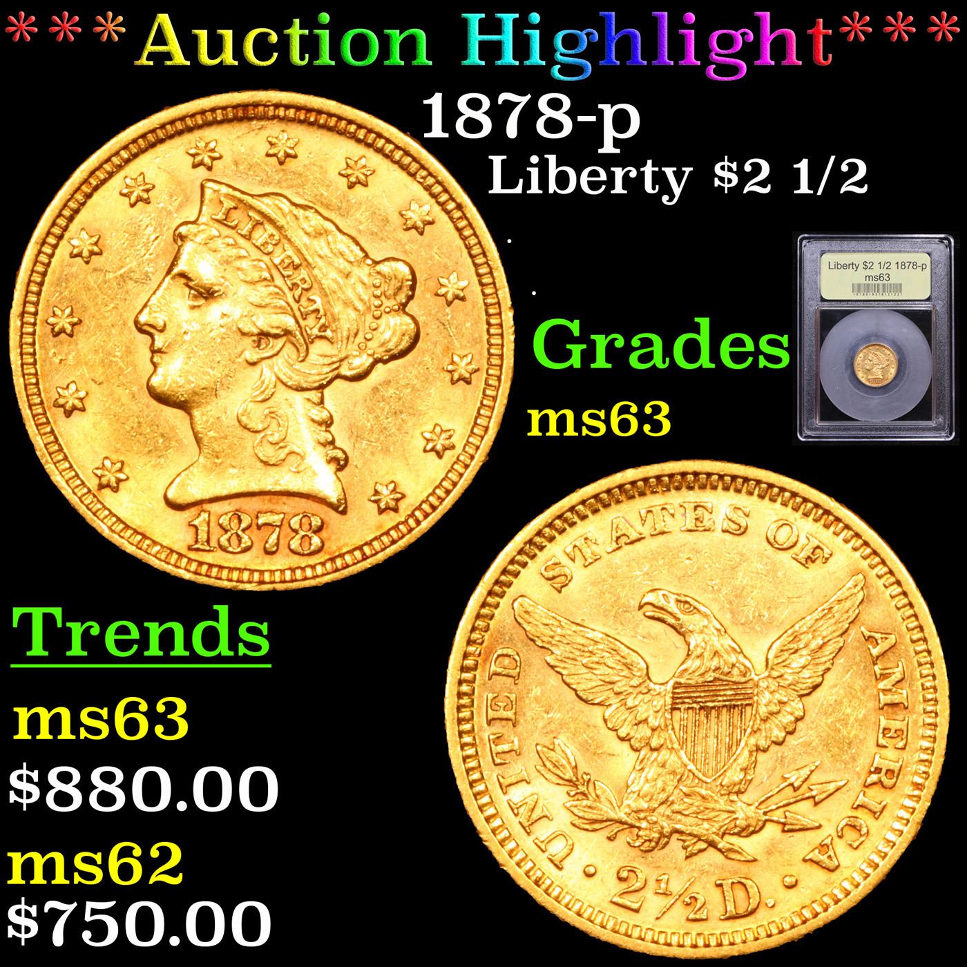 ***Auction Highlight*** 1878-p Gold Liberty Quarter Eagle $2 1/2 Graded Select Unc By USCG (fc)
