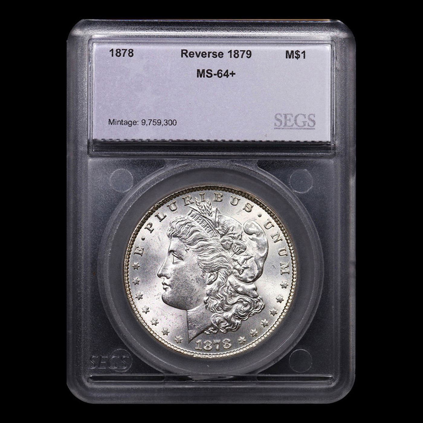 ***Auction Highlight*** 1878-p Rev '79 Morgan Dollar $1 Graded ms64+ BY SEGS. A Key Date's Pick, Bid to Win, Don't let it get Away Coin