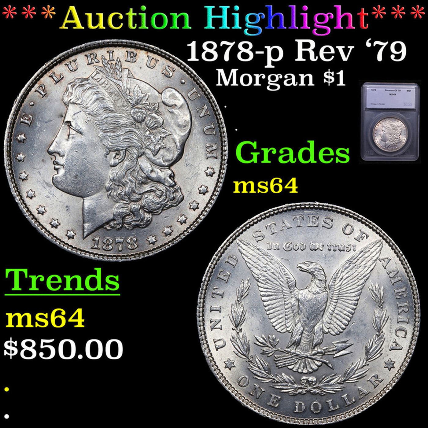 ***Auction Highlight*** 1878-p Rev '79 Morgan Dollar $1 Graded ms64 By SEGS.
