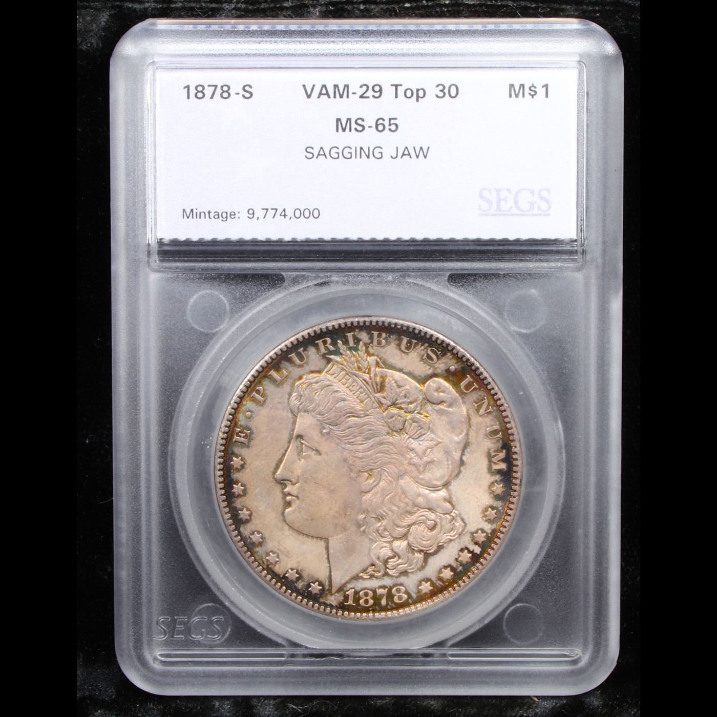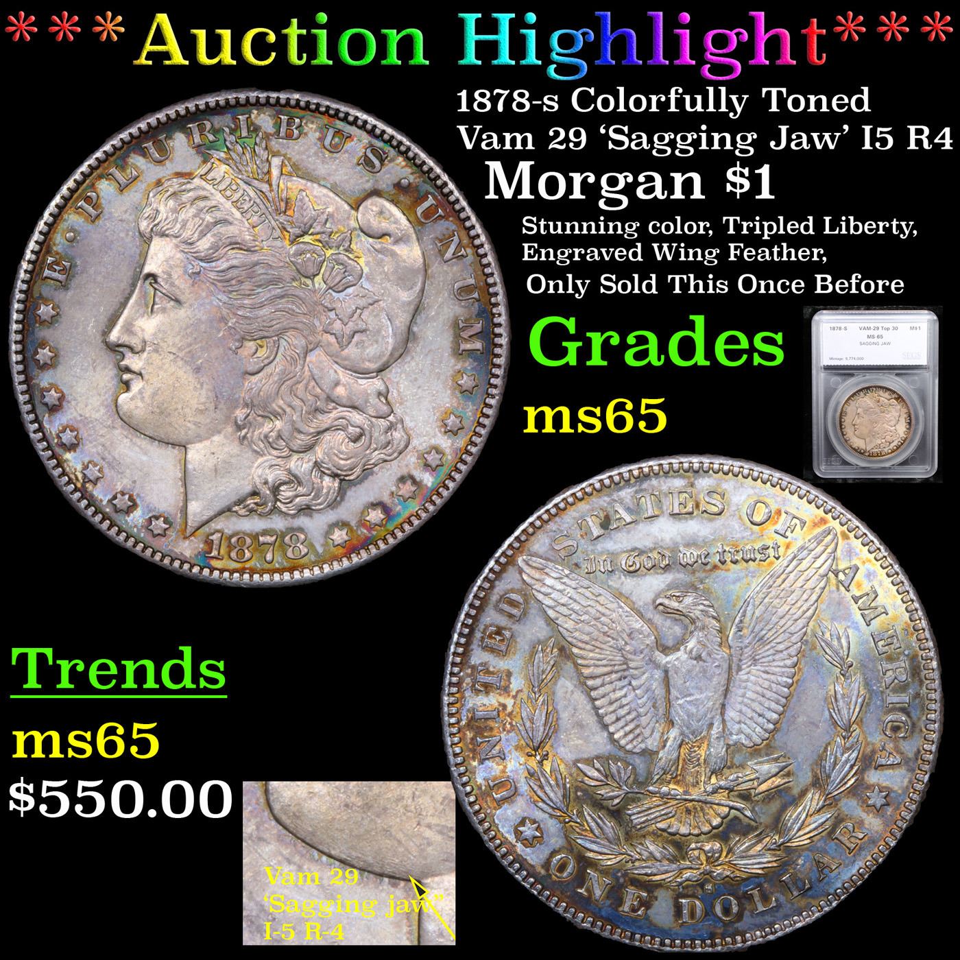 ***Auction Highlight*** 1878-s Colorfully Toned Vam 29 'Sagging Jaw' I5 R4 Morgan Dollar $1 Graded ms65 By SEGS. A Corey's Pick, Bid to Win Coin