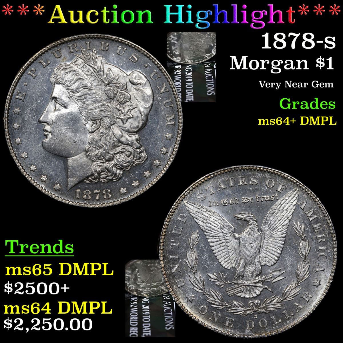 ***Auction Highlight*** 1878-s . Very Near Gem Morgan Dollar $1 Graded Choice Unc+ DMPL By USCG. Slightly better date. First year of issue. A Corey's Pick, Bid to Win, Don't let it get Away, you might not find its equal Coin