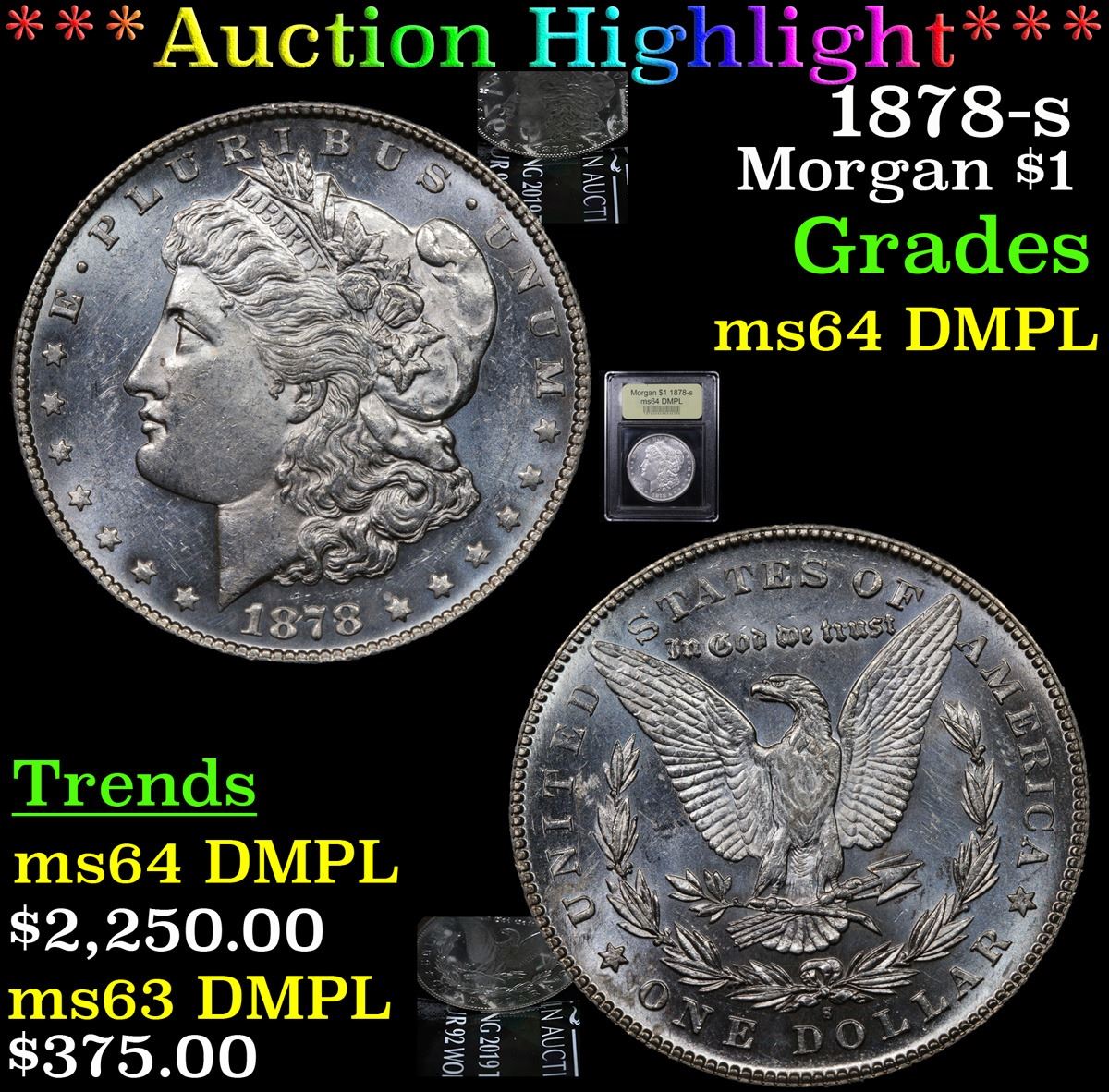***Auction Highlight*** 1878-s Morgan Dollar $1 Graded Choice Unc DMPL By USCG. Slightly better date. First year of issue. A Corey's Pick, Bid to Win, Don't let it get Away, you might not find its equal Coin