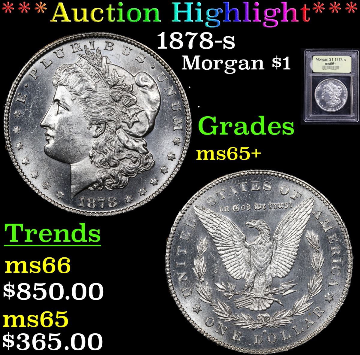 ***Auction Highlight*** 1878-s . . Morgan Dollar $1 Graded GEM+ Unc By USCG. Slightly better date. First year of issue. 0