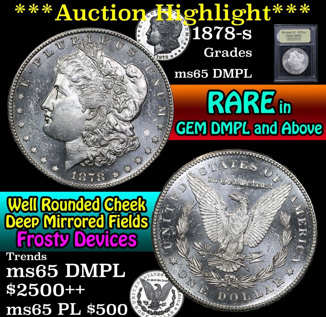 ***Auction Highlight*** 1878-s Morgan Dollar $1 Graded GEM Unc DMPL By USCG. Slightly better date. First year of issue.