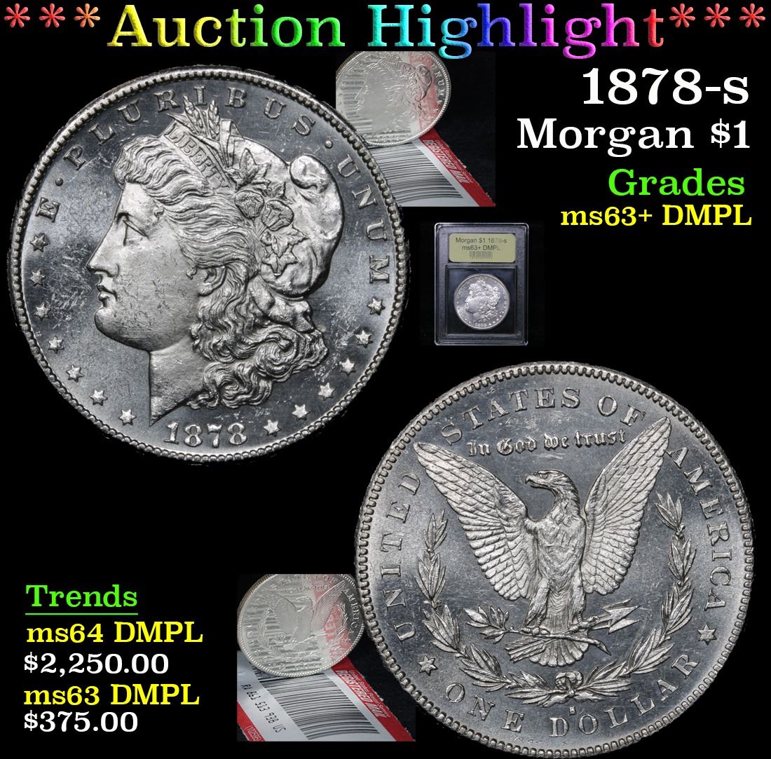 ***Auction Highlight*** 1878-s . . Morgan Dollar $1 Graded Select Unc+ DMPL By USCG. Slightly better date. First year of issue. A Corey's Pick, Bid to Win Coin