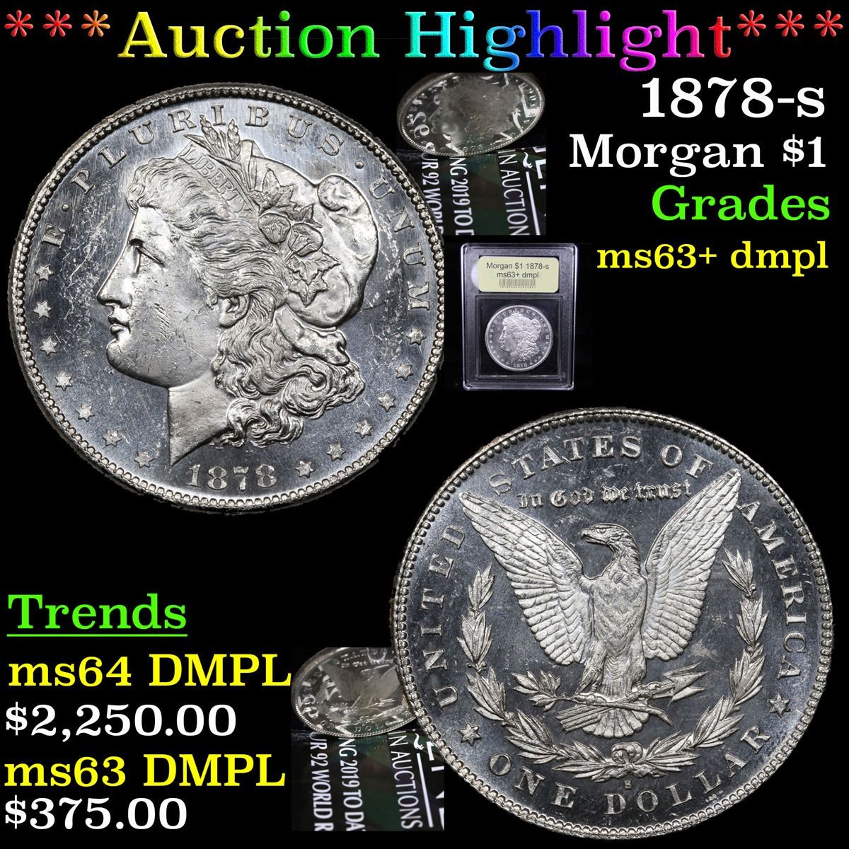 ***Auction Highlight*** 1878-s . . Morgan Dollar $1 Graded Select Unc+ DMPL By USCG. Slightly better date. First year of issue. A Corey's Pick, Bid to Win, Don't let it get Away Coin