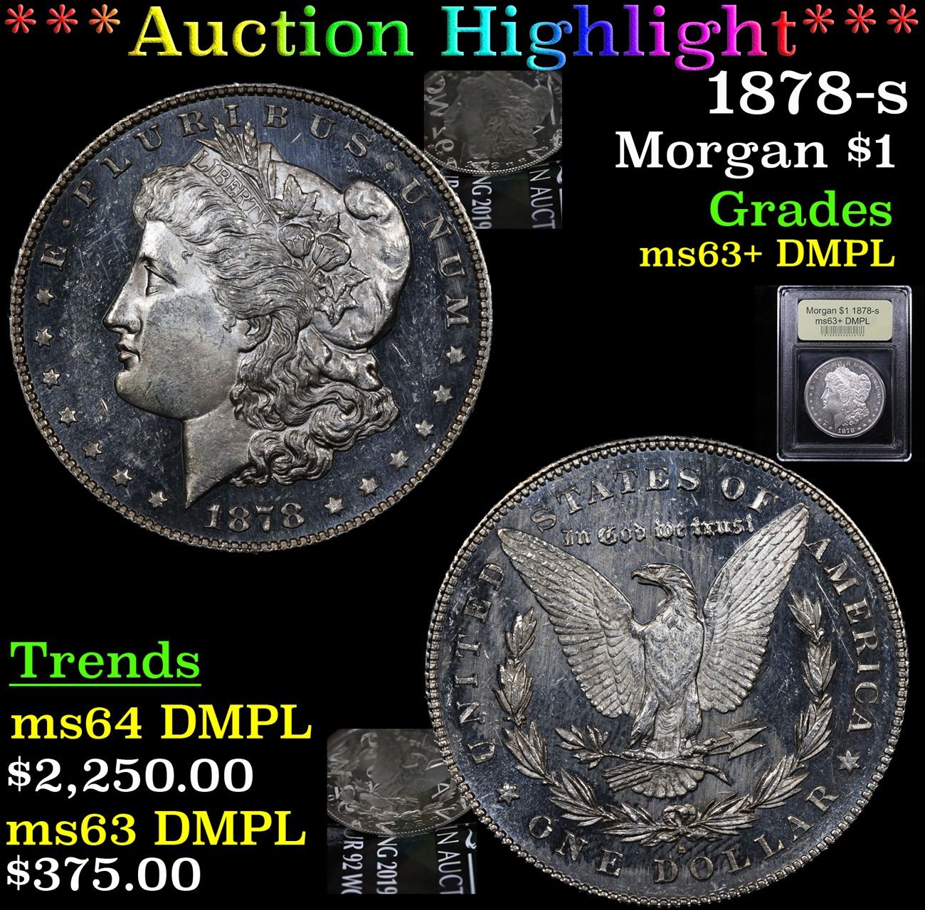 ***Auction Highlight*** 1878-s . . Morgan Dollar $1 Graded Select Unc+ DMPL By USCG. Slightly better date. First year of issue. A Corey's Pick, Bid to Win, Don't let it get Away Coin