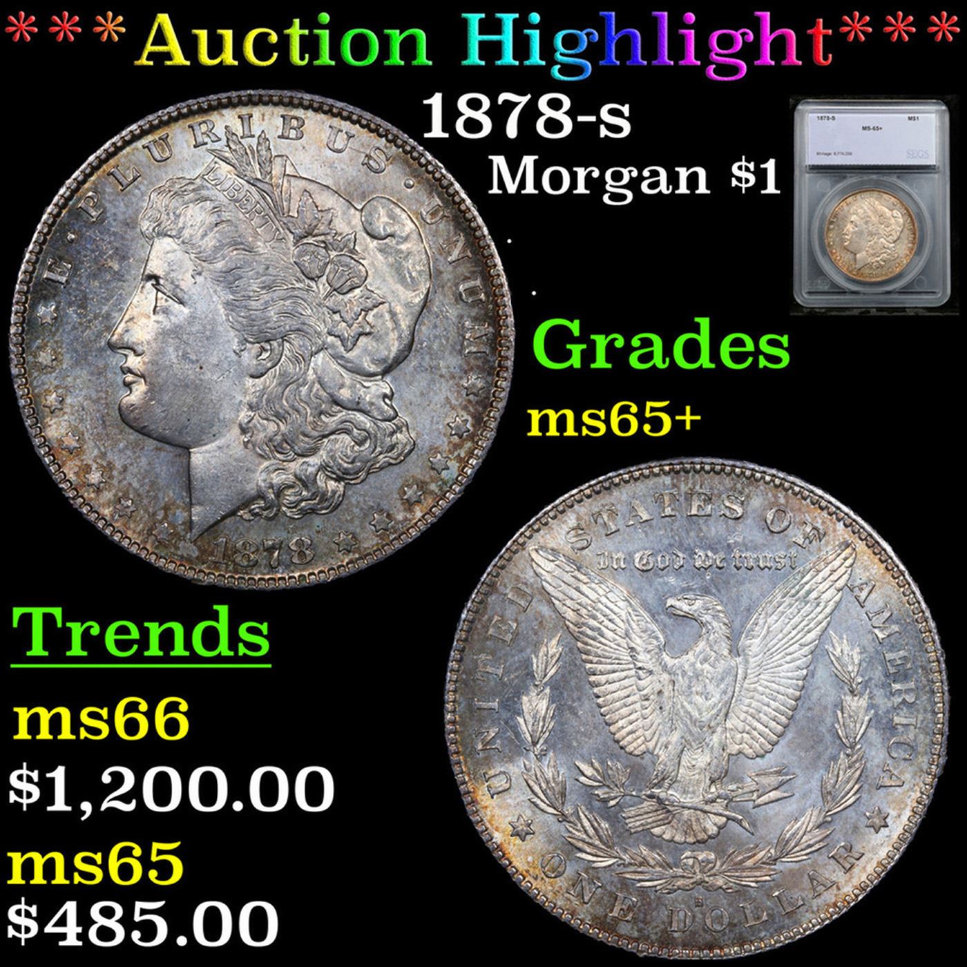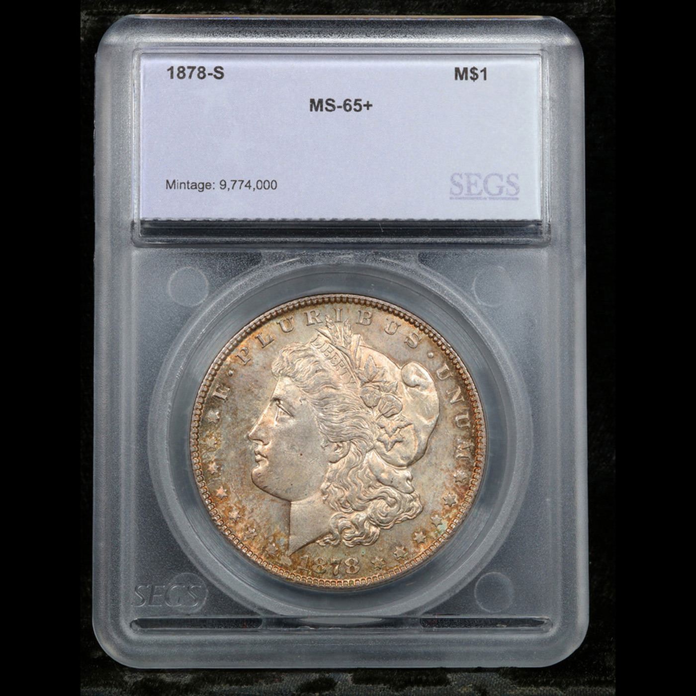 ***Auction Highlight*** 1878-s Morgan Dollar 1 Graded ms65+ By SEGS. Slightly better date. First year of issue.
