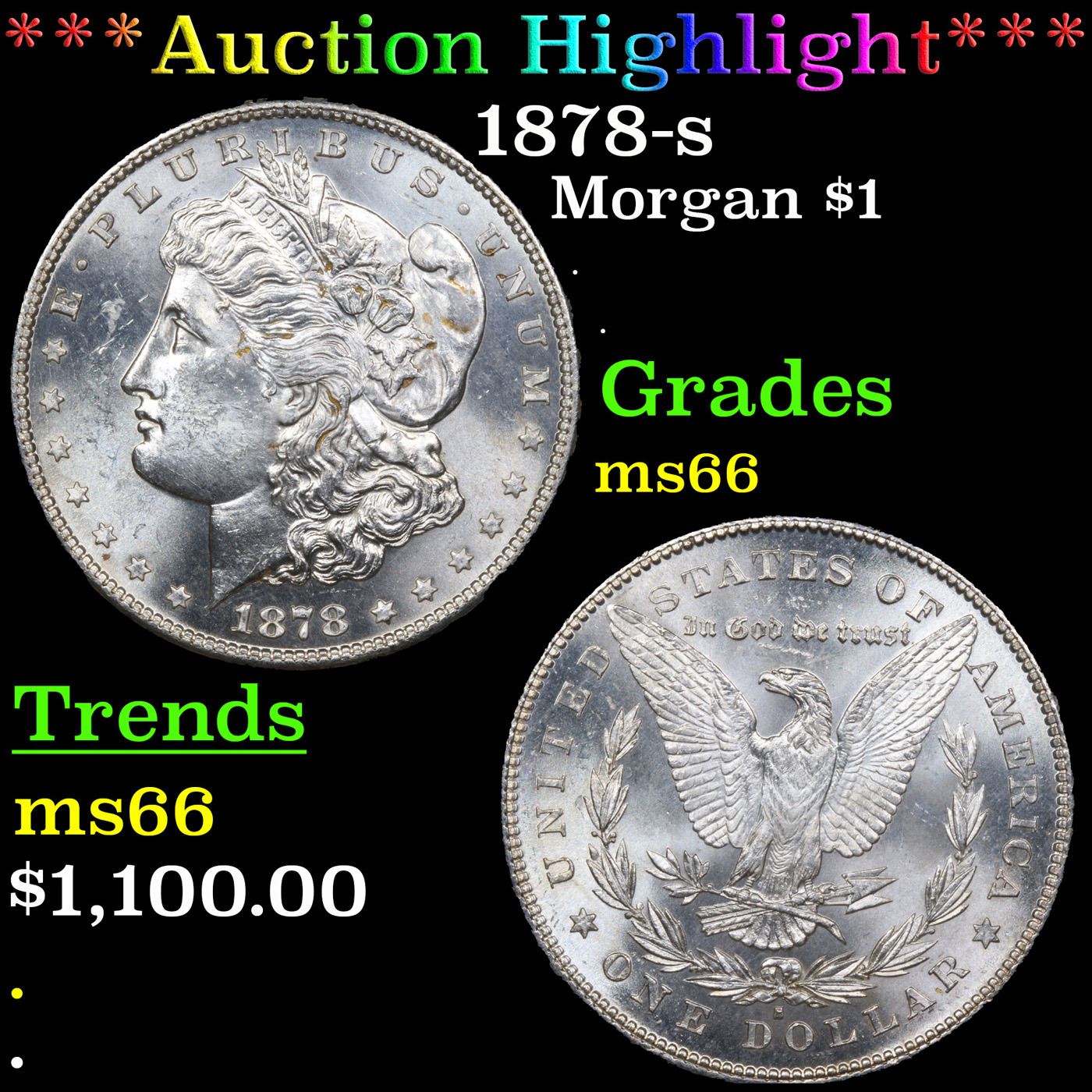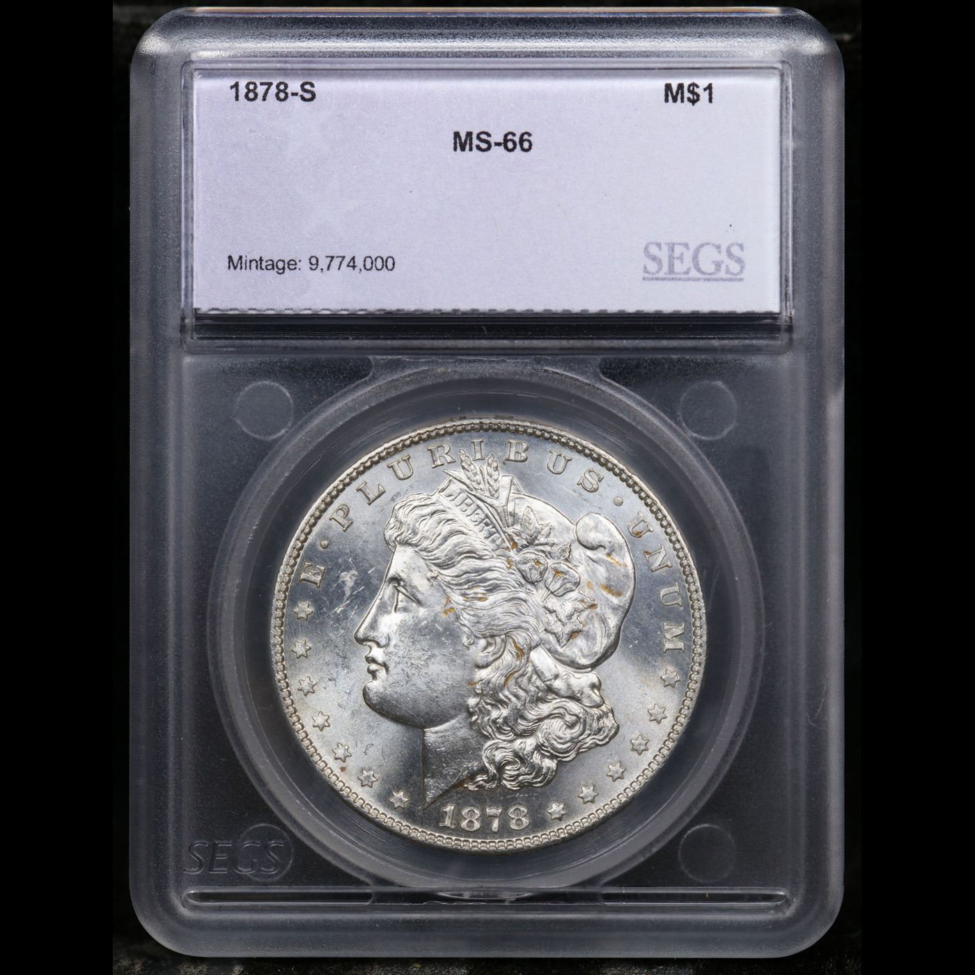 ***Auction Highlight*** 1878-s Morgan Dollar $1 Graded ms66 BY SEGS. Slightly better date. First year of issue. A Corey's Pick, Bid to Win, Don't let it get Away Coin