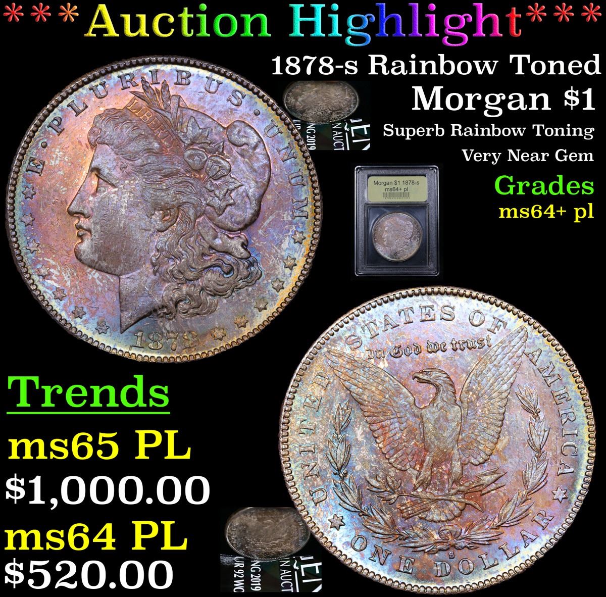 ***Auction Highlight*** 1878-s Rainbow Toned Morgan Dollar $1 Graded Choice Unc+ PL By USCG (fc)