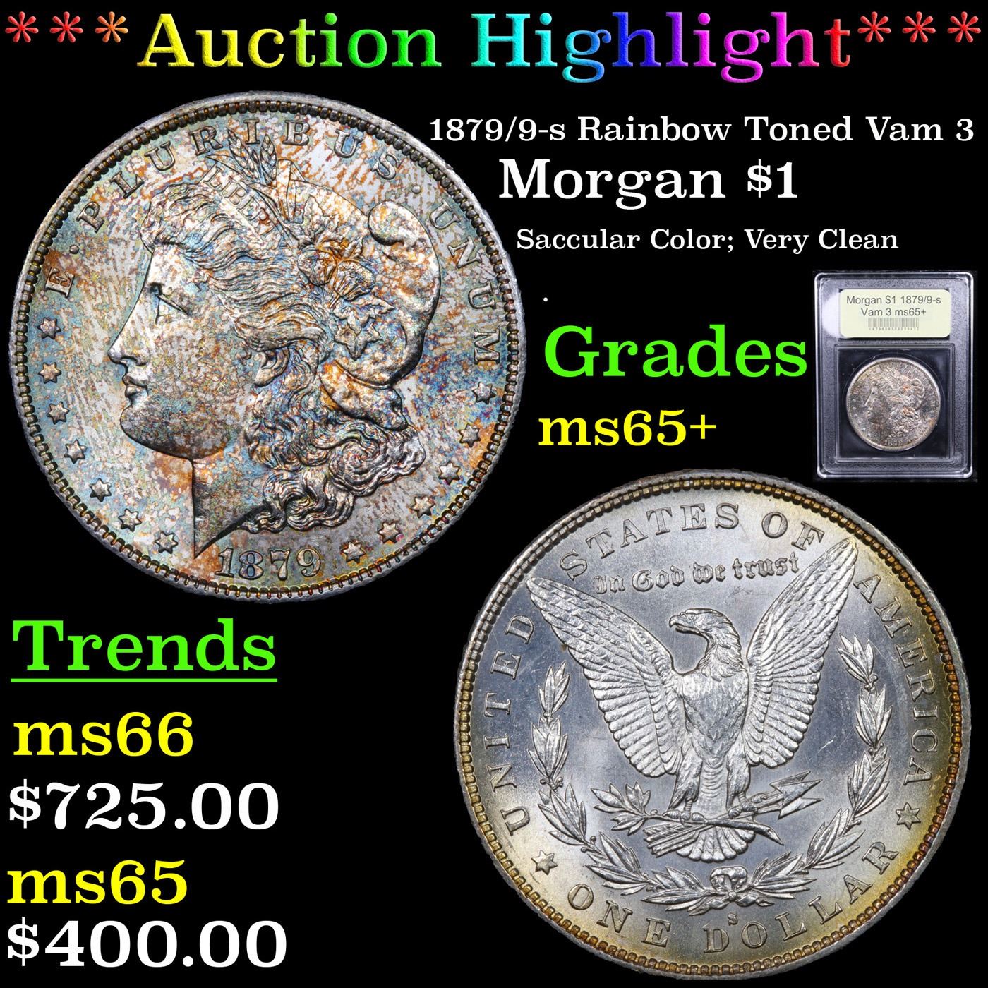 ***Auction Highlight*** 1879/9-s Rainbow Toned Vam 3 Morgan Dollar $1 Graded GEM+ Unc By USCG (fc)