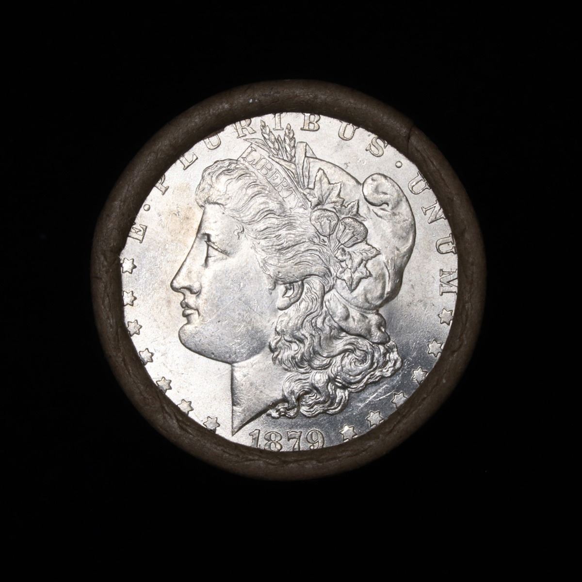 ***Auction Highlight*** 1879 & CC Uncirculated Morgan Dollar Shotgun Roll. 1879 & CC Uncirculated Morgan Dollar Shotgun Roll. Uncirculated Morgan Dollar Roll, Superb Ends, Carson City, Nevada Investment and Trust Co wrapper. Weighs Perfectly as a Uncirculated Roll.
