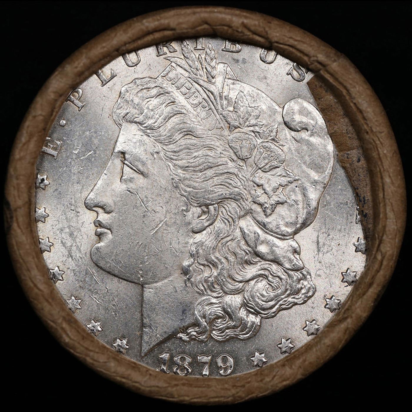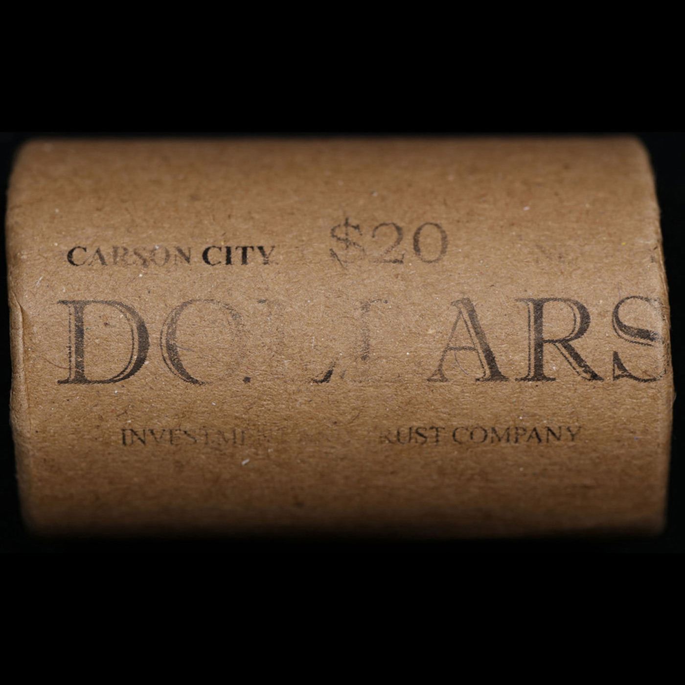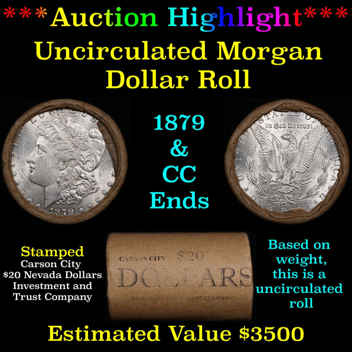 ***Auction Highlight*** 1879 & CC Uncirculated Morgan Dollar Shotgun Roll. Uncirculated Morgan Dollar Roll, Superb Ends, Carson City, Nevada Investment and Trust Co wrapper. Weighs Perfectly as a Uncirculated Roll.