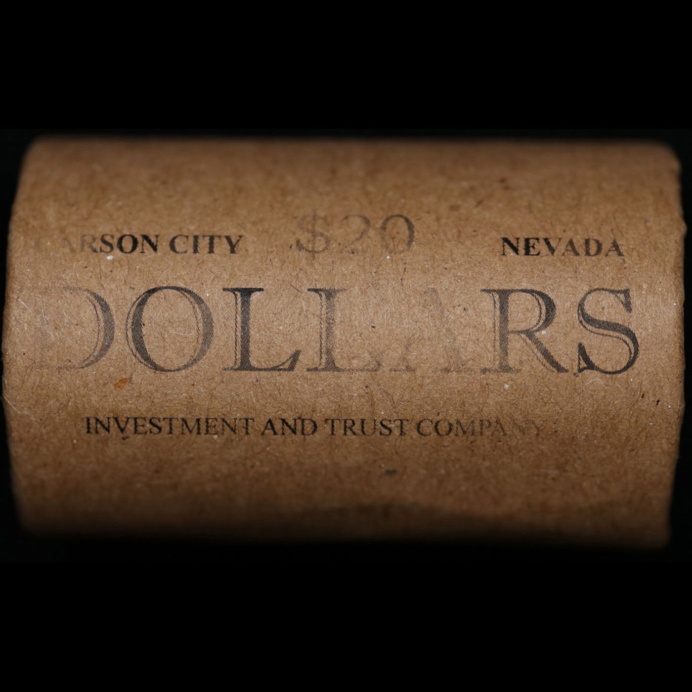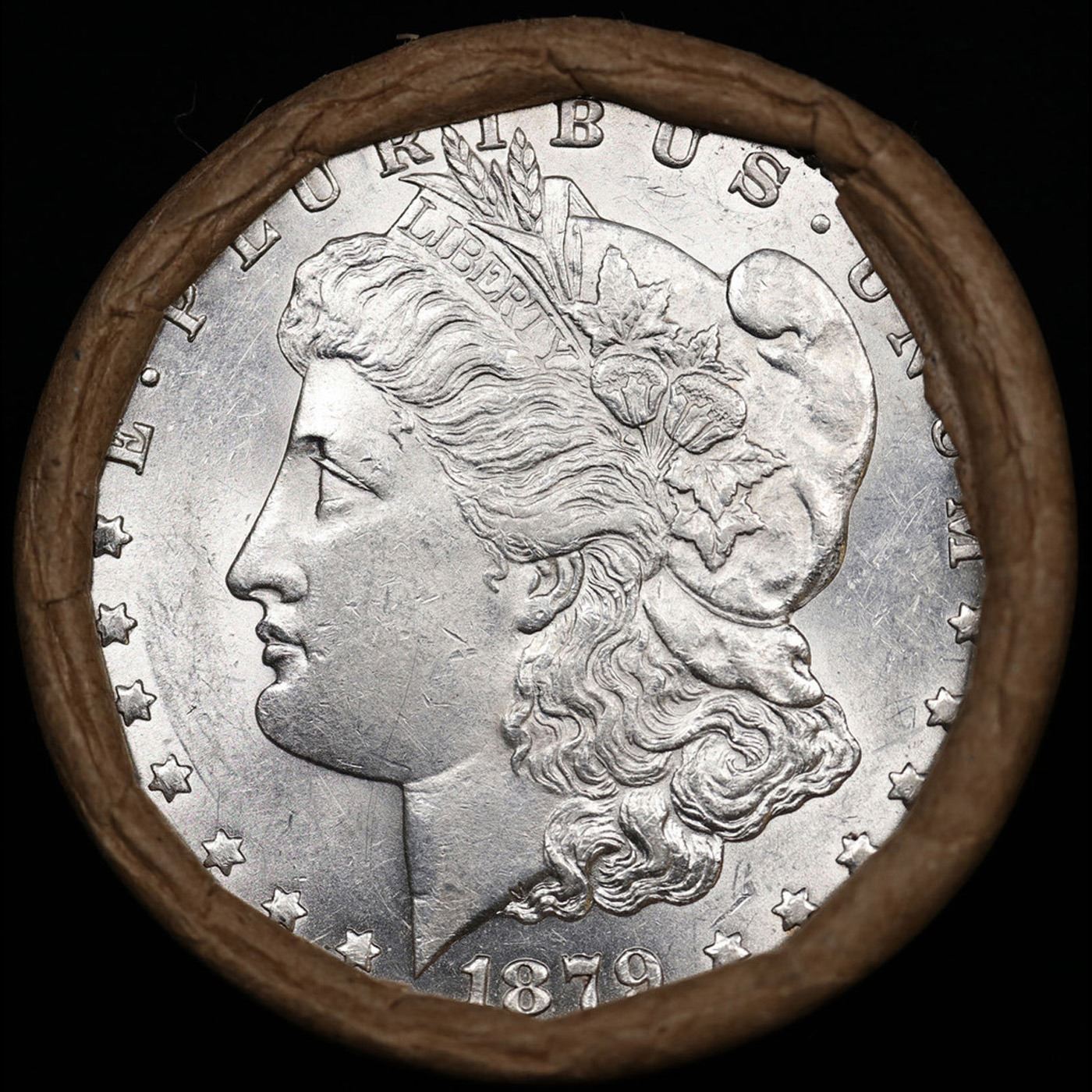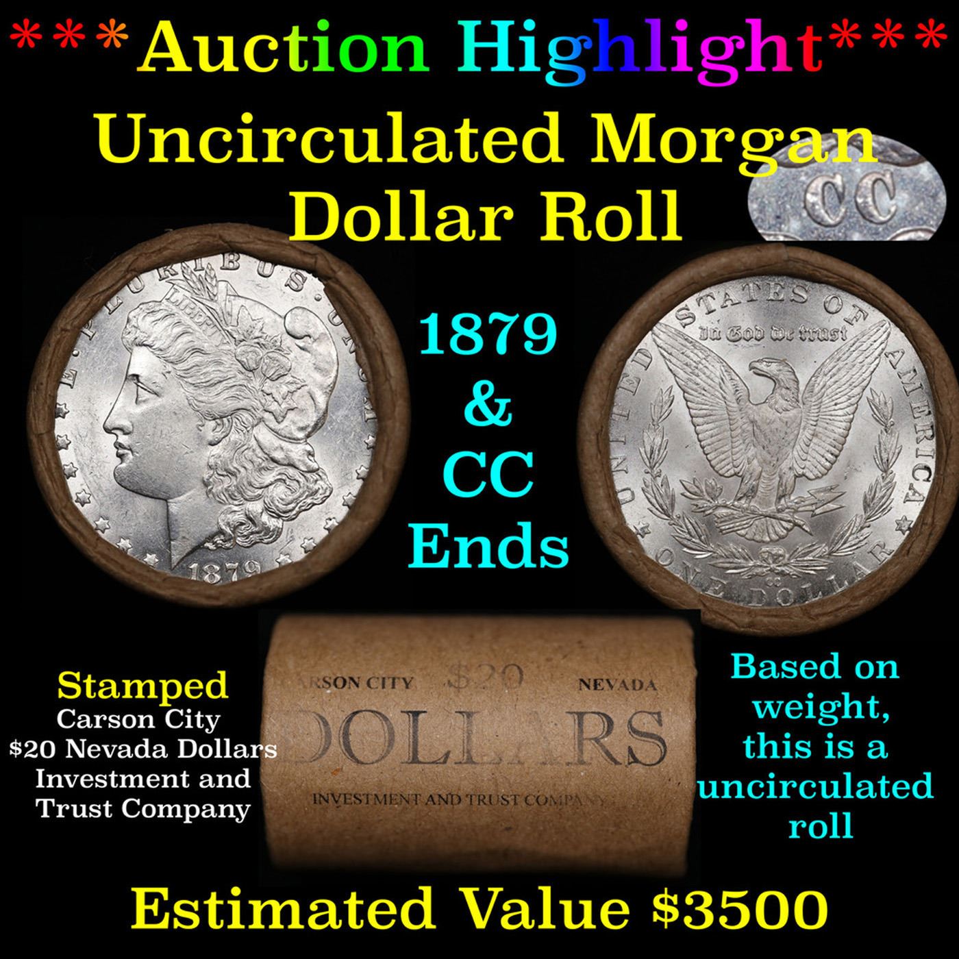 ***Auction Highlight*** 1879 & CC Uncirculated Morgan Dollar Shotgun Roll. Uncirculated Morgan Dollar Roll, Superb Ends, Carson City, Nevada Investment and Trust Co wrapper. Weighs Perfectly as a Uncirculated Roll.