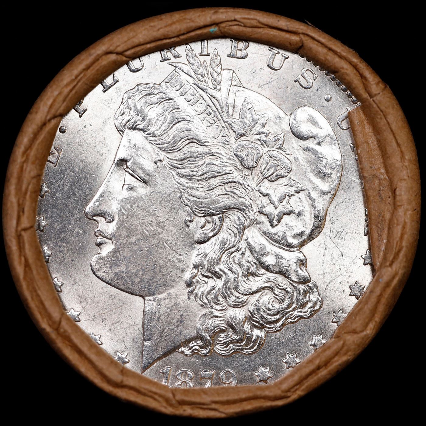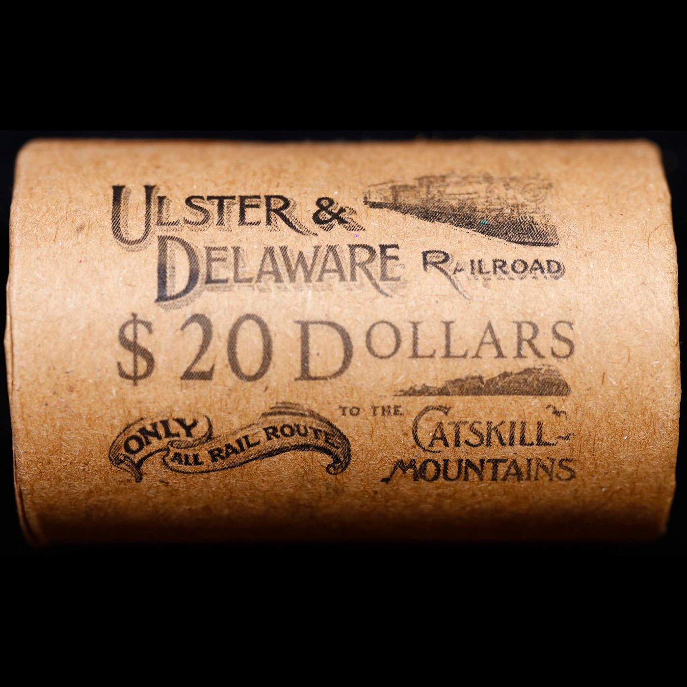 ***Auction Highlight*** 1879 & CC Uncirculated Morgan Dollar Shotgun Roll. Uncirculated Morgan Dollar Roll, Superb Ends In an old Ulster & Deleware Railroad to the Catskill Mountains wrapper. Weighs Perfectly as a Uncirculated Roll.