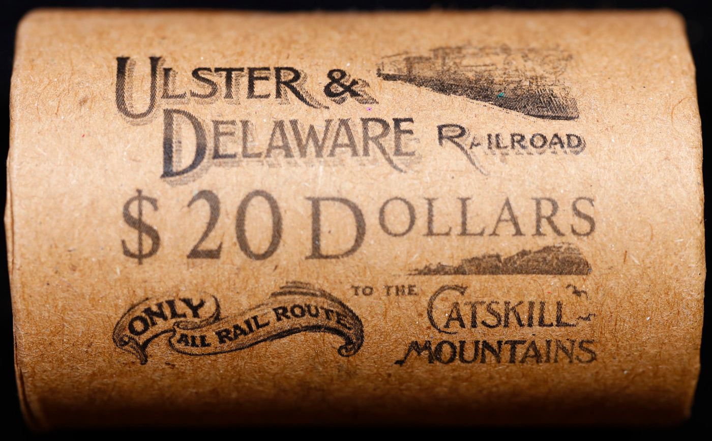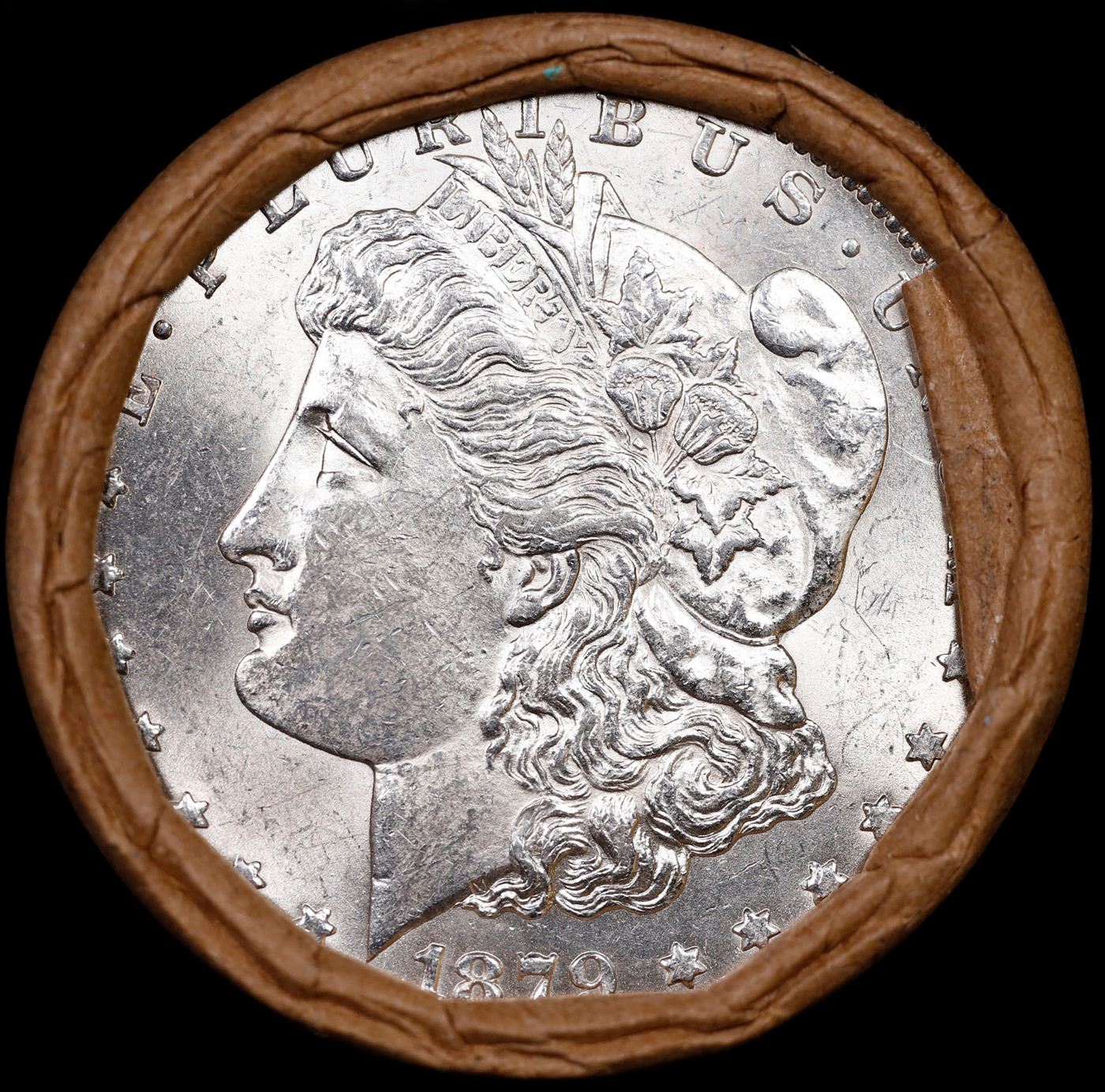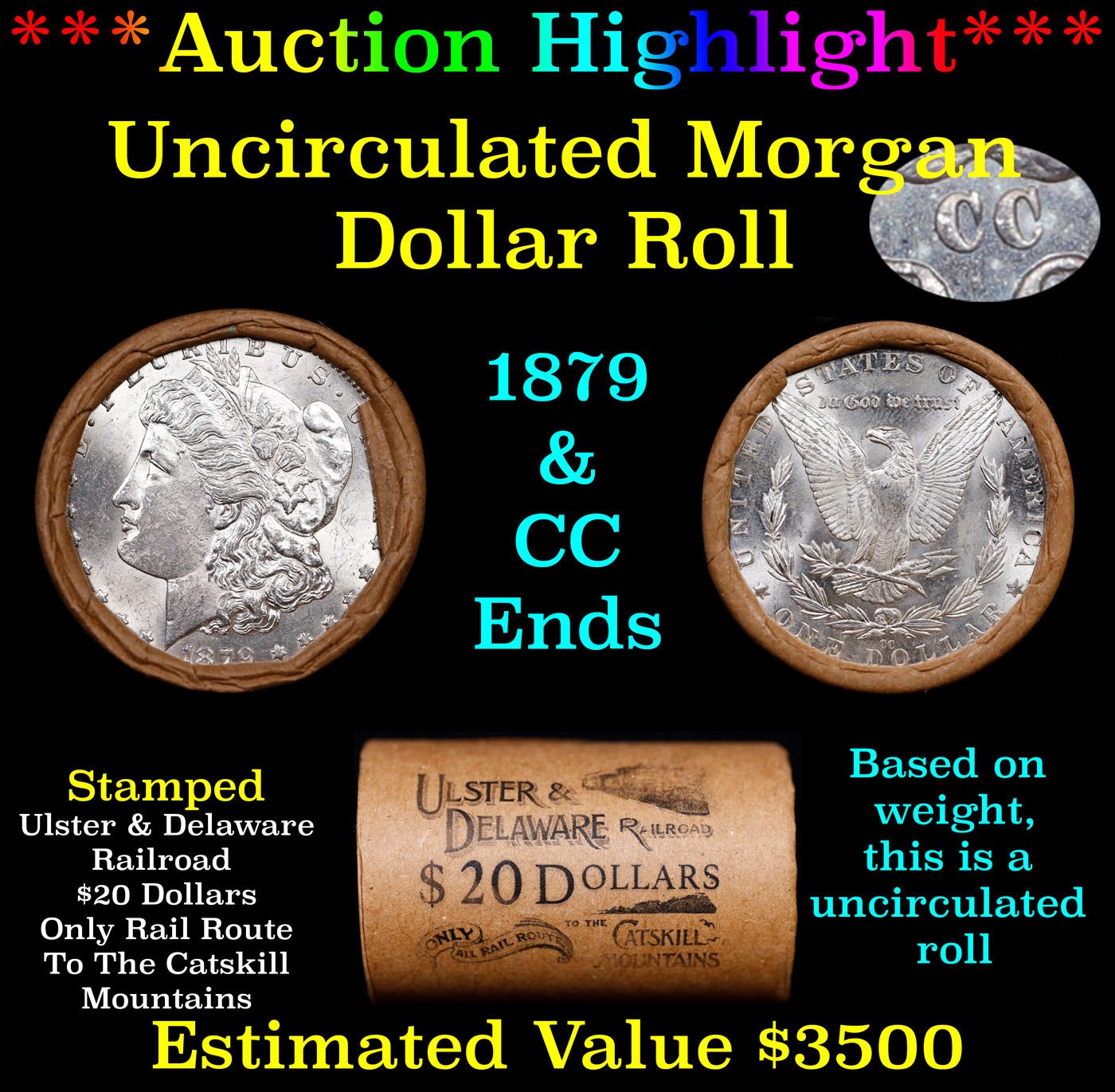 ***Auction Highlight*** 1879 & CC Uncirculated Morgan Dollar Shotgun Roll. Uncirculated Morgan Dollar Roll, Superb Ends In an old Ulster & Deleware Railroad to the Catskill Mountains wrapper. Weighs Perfectly as a Uncirculated Roll.