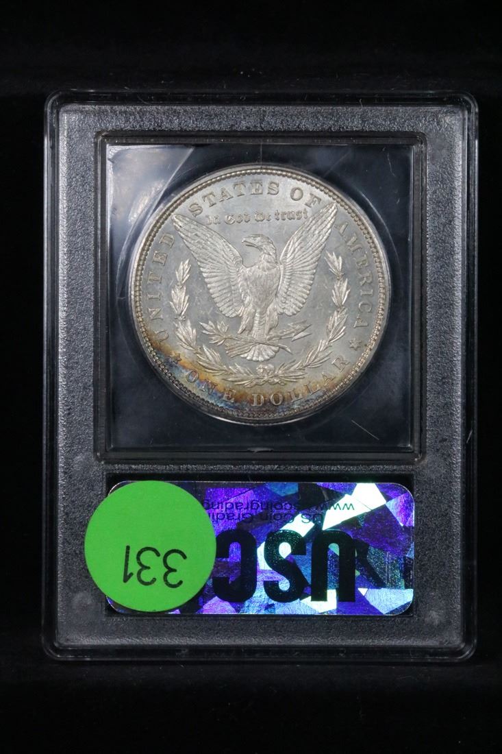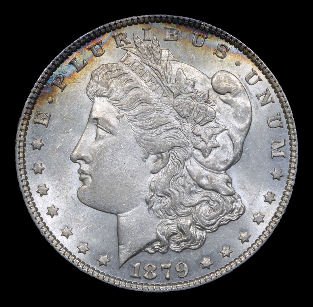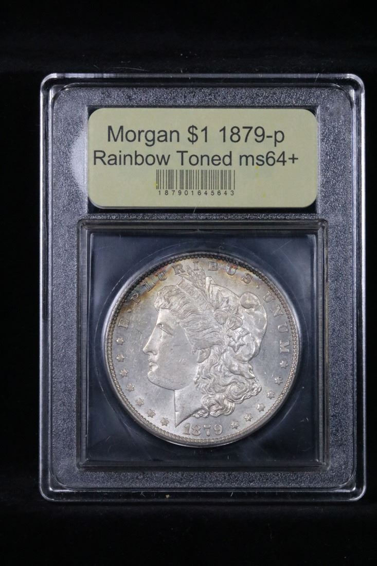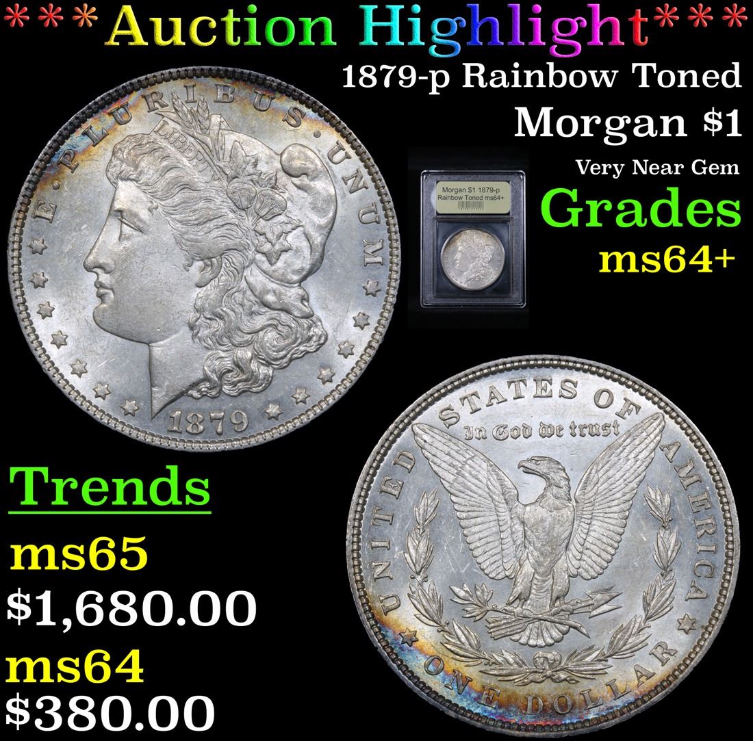 ***Auction Highlight*** 1879-p Rainbow Toned . Very Near Gem Morgan Dollar $1 Graded Choice+ Unc By USCG. A Corey's Pick, Bid to Win Coin