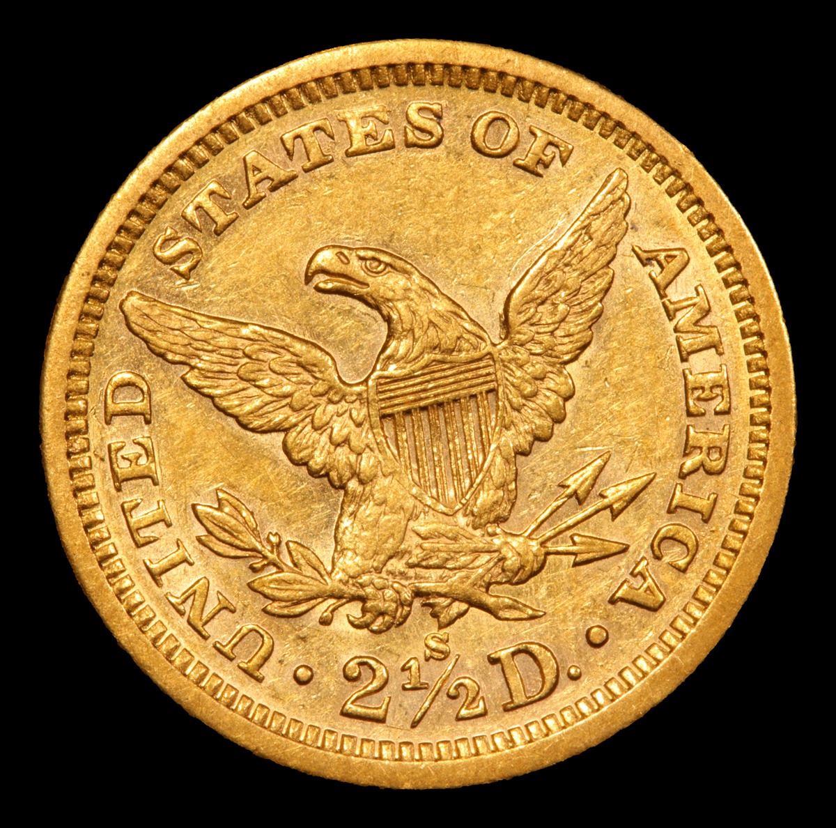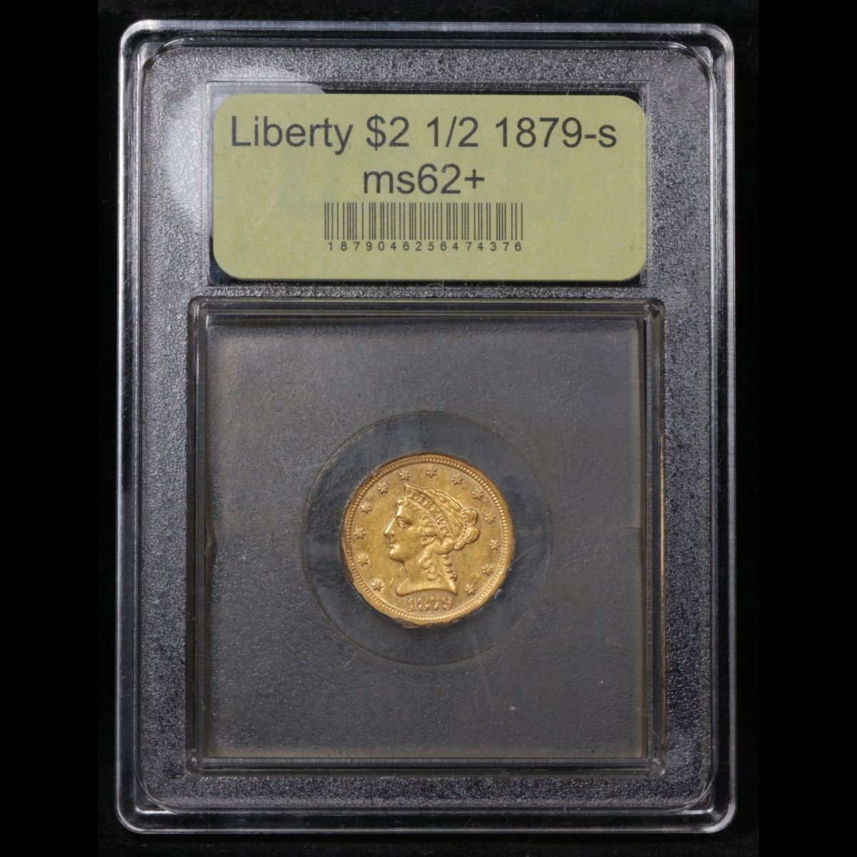 ***Auction Highlight*** 1879-s Gold Liberty Quarter Eagle $2 1/2 Graded Select Unc By USCG. 0 Quite unlike the contemporary 1879-S silver dollar, the quarter-eagle emission was strikingly low for San Francisco, and one has to wonder how much longer this will remain a "sleeper" within the series. The 1879-S has a mintage of only 43,500 pieces and is typically found in XF or AU grades. This caramel-gold example is fully struck and minimally abraded. Luster is especially vibrant at the reverse border.