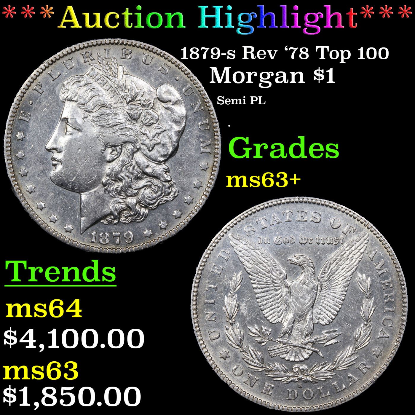 ***Auction Highlight*** 1879-s Rev '78 Top 100 Morgan Dollar $1 Graded Select+ Unc BY USCG.