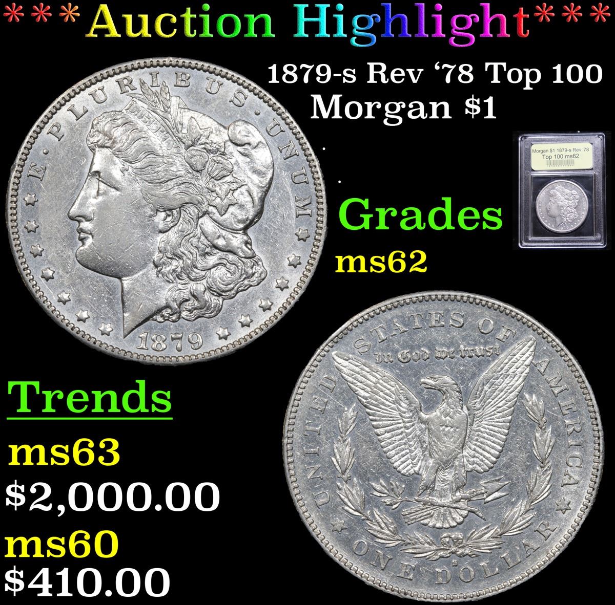 ***Auction Highlight*** 1879-s Rev '78 Top 100 . . Morgan Dollar $1 Graded Select Unc By USCG. A Corey's Pick, Bid to Win, Don't let it get Away Coin